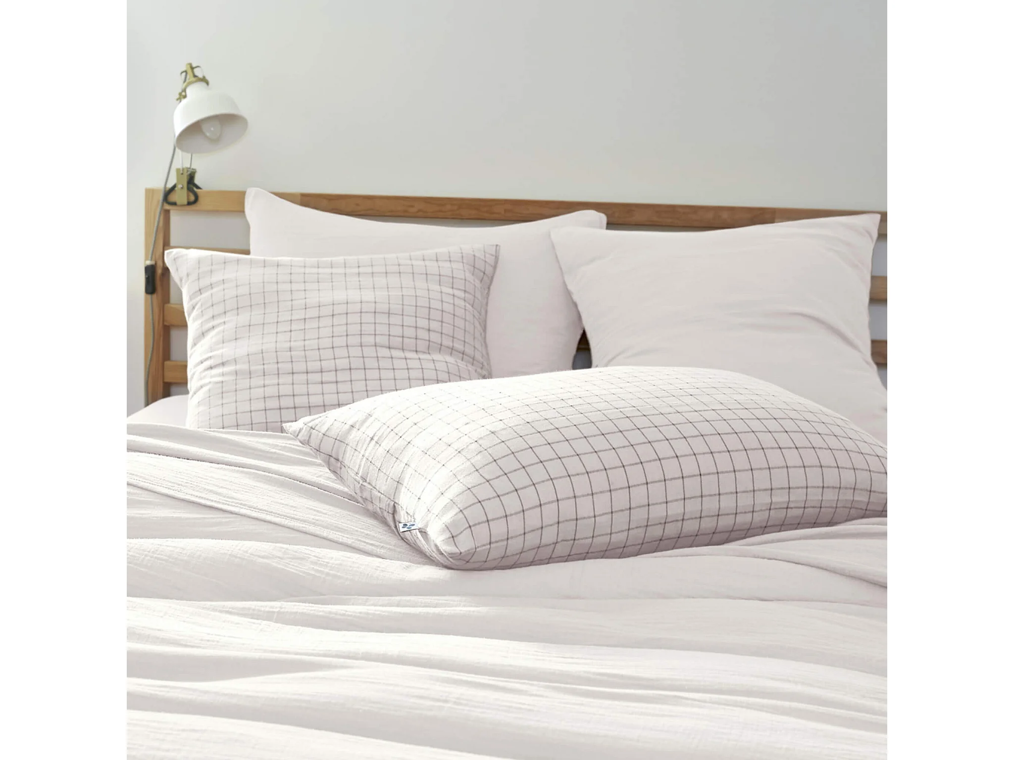 Taie d'oreiller à carreaux double gaze de coton blanc 60x60