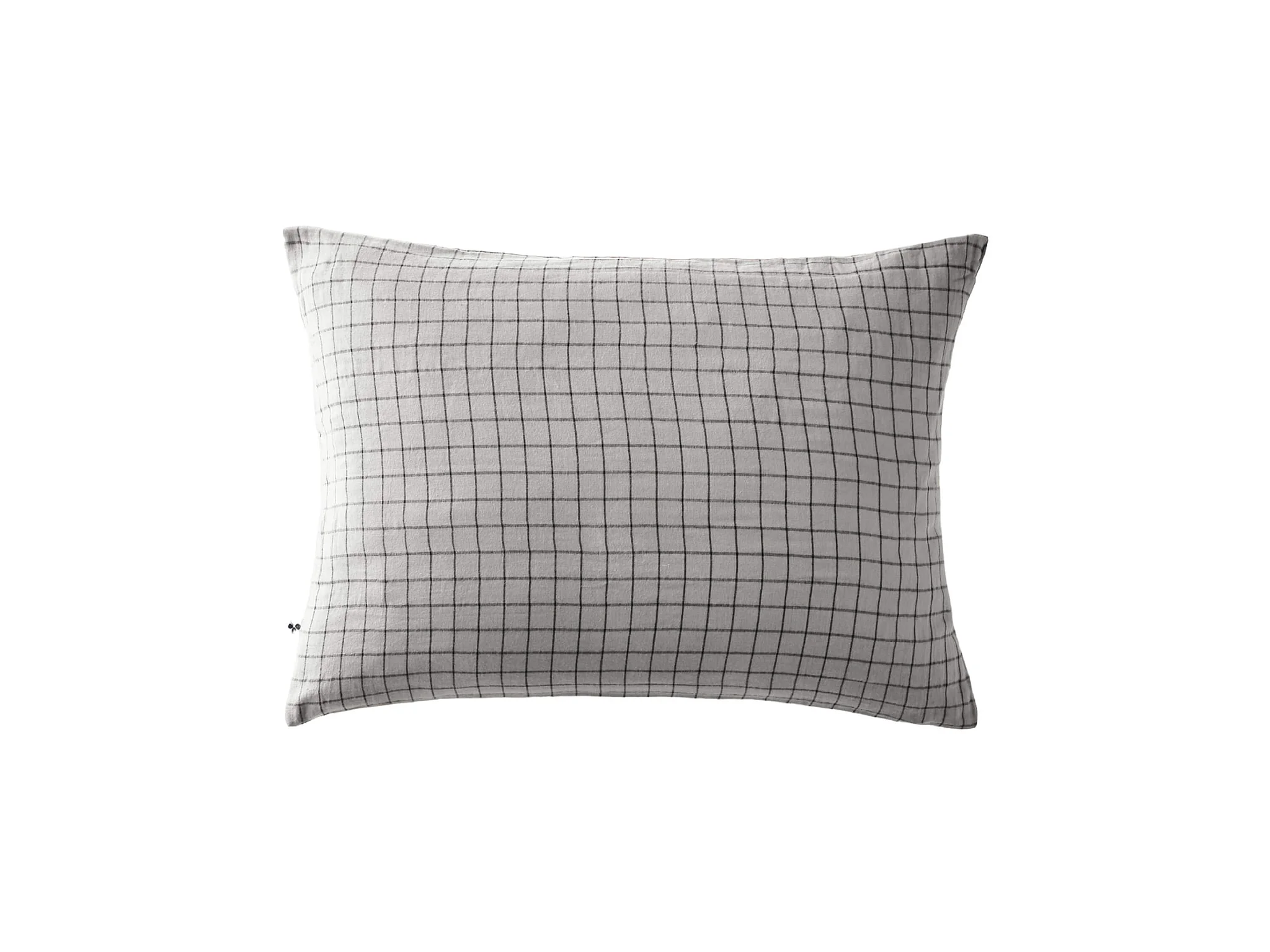 Taie d'oreiller à carreaux double gaze de coton gris 50x70