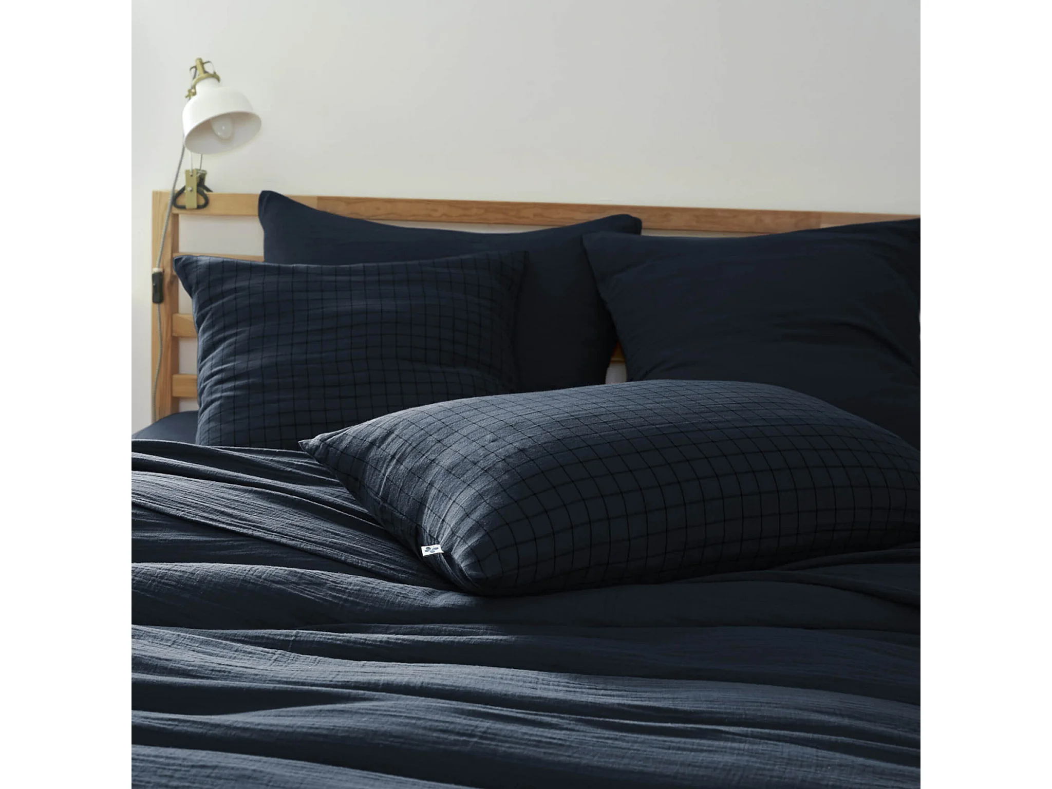 Taie d'oreiller 60x60 double gaze de coton grands carreaux minuit Terre de Nuit