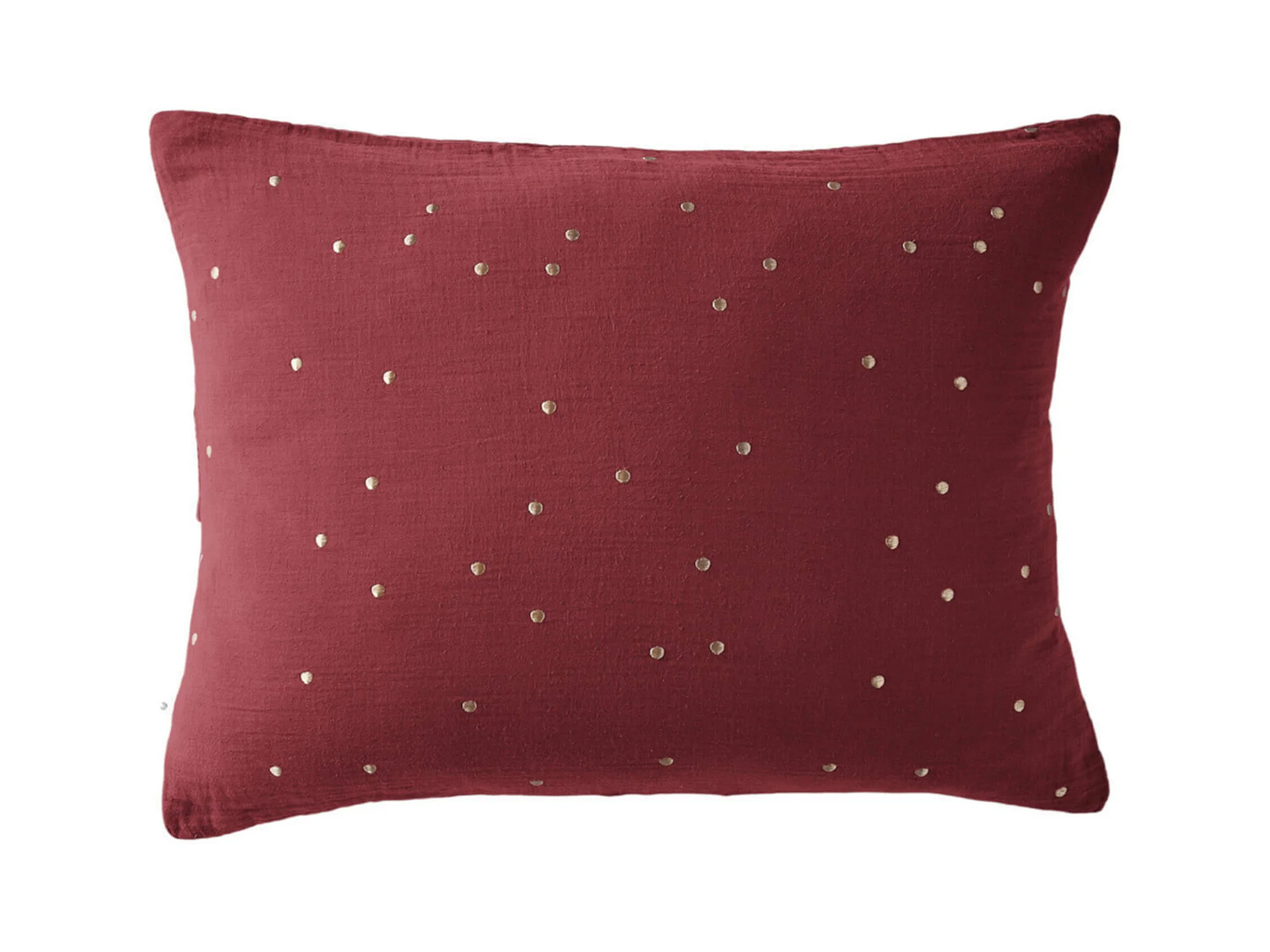 Taie d'oreiller à pois brodés double gaze de coton bordeaux 60x60 cm