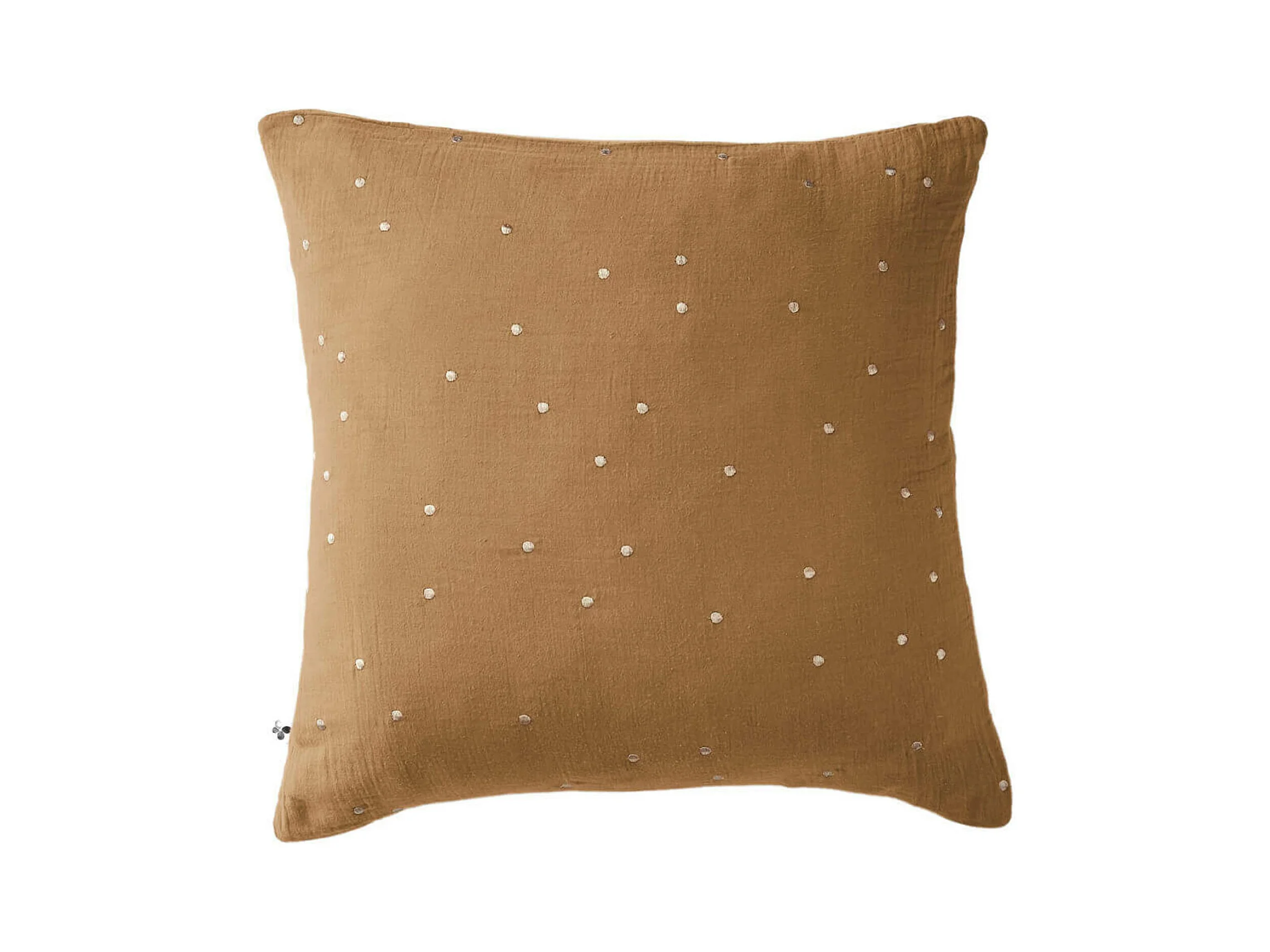 OUREA MOTIF - Taie d'Oreiller 60x60cm Gaze de Coton Camel à Pois Dorés