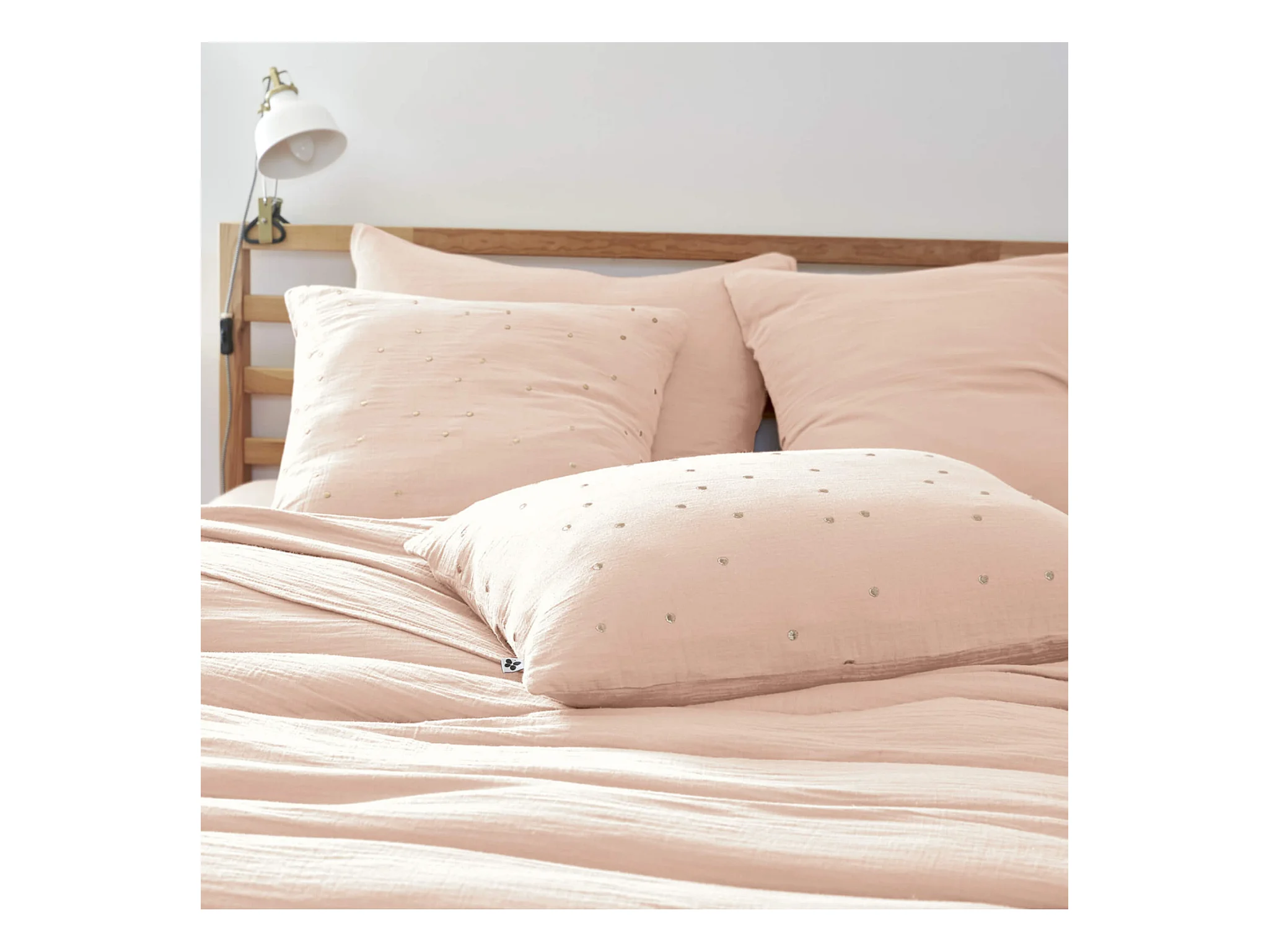 Taie d'oreiller à pois brodés double gaze de coton rose 50x70 cm
