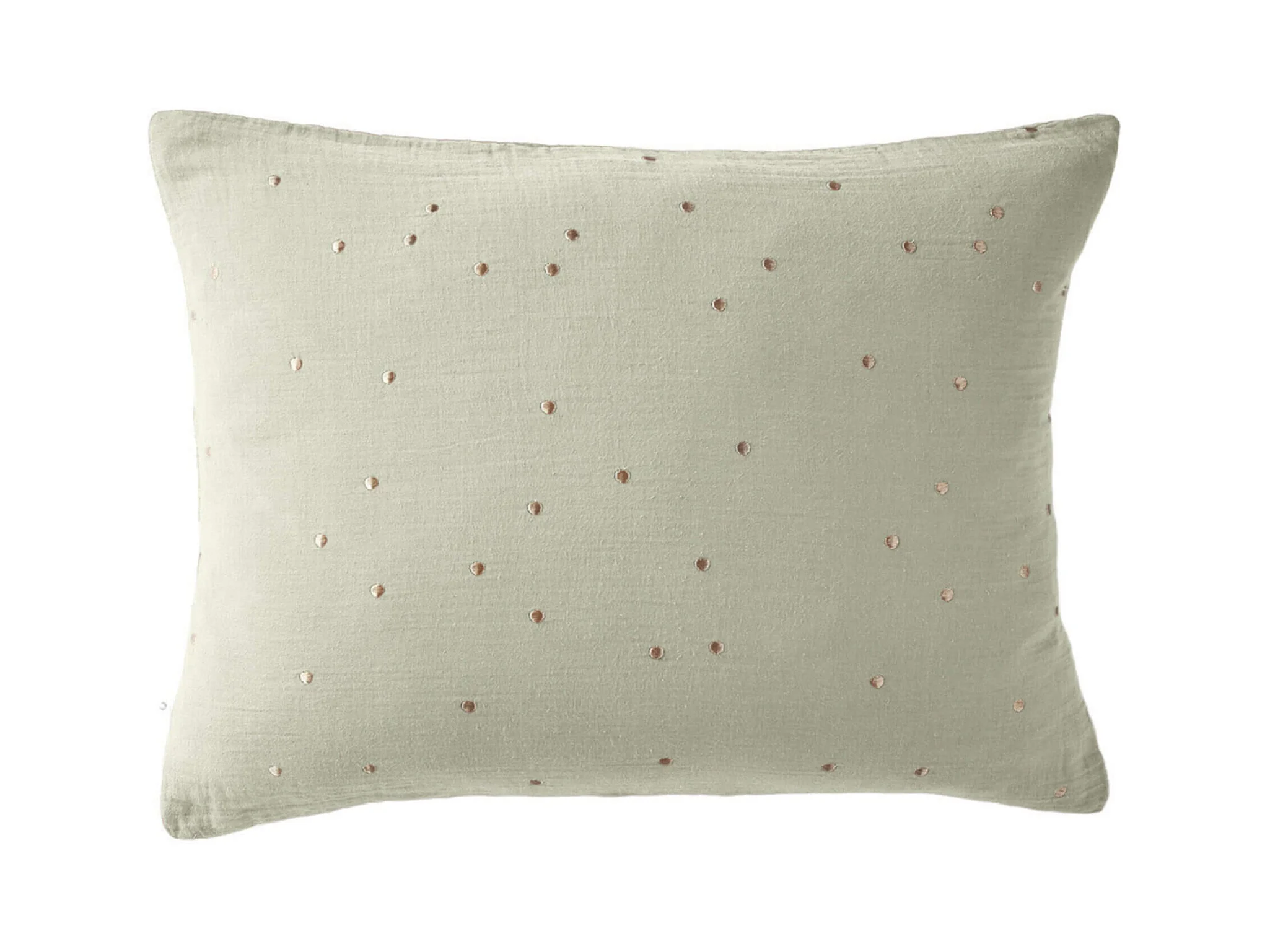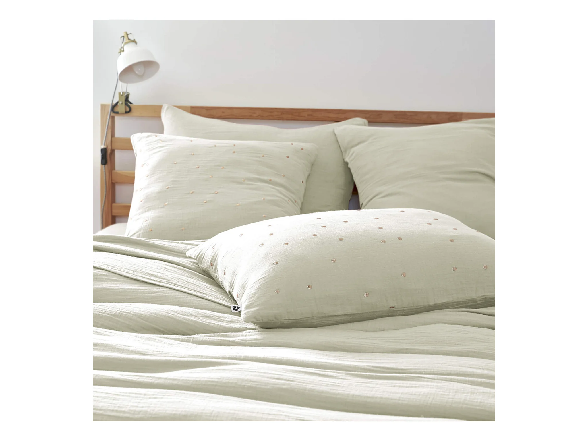 Taie d'oreiller à pois brodés double gaze de coton vert d'eau 60x60 cm