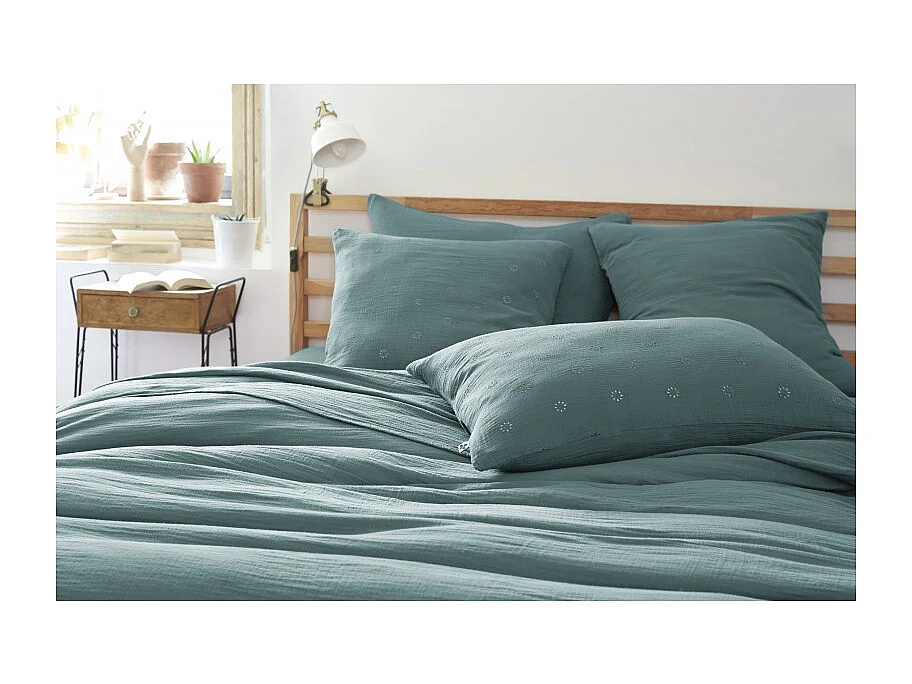 Taie d'oreiller double gaze de coton bleu canard 60x60 cm