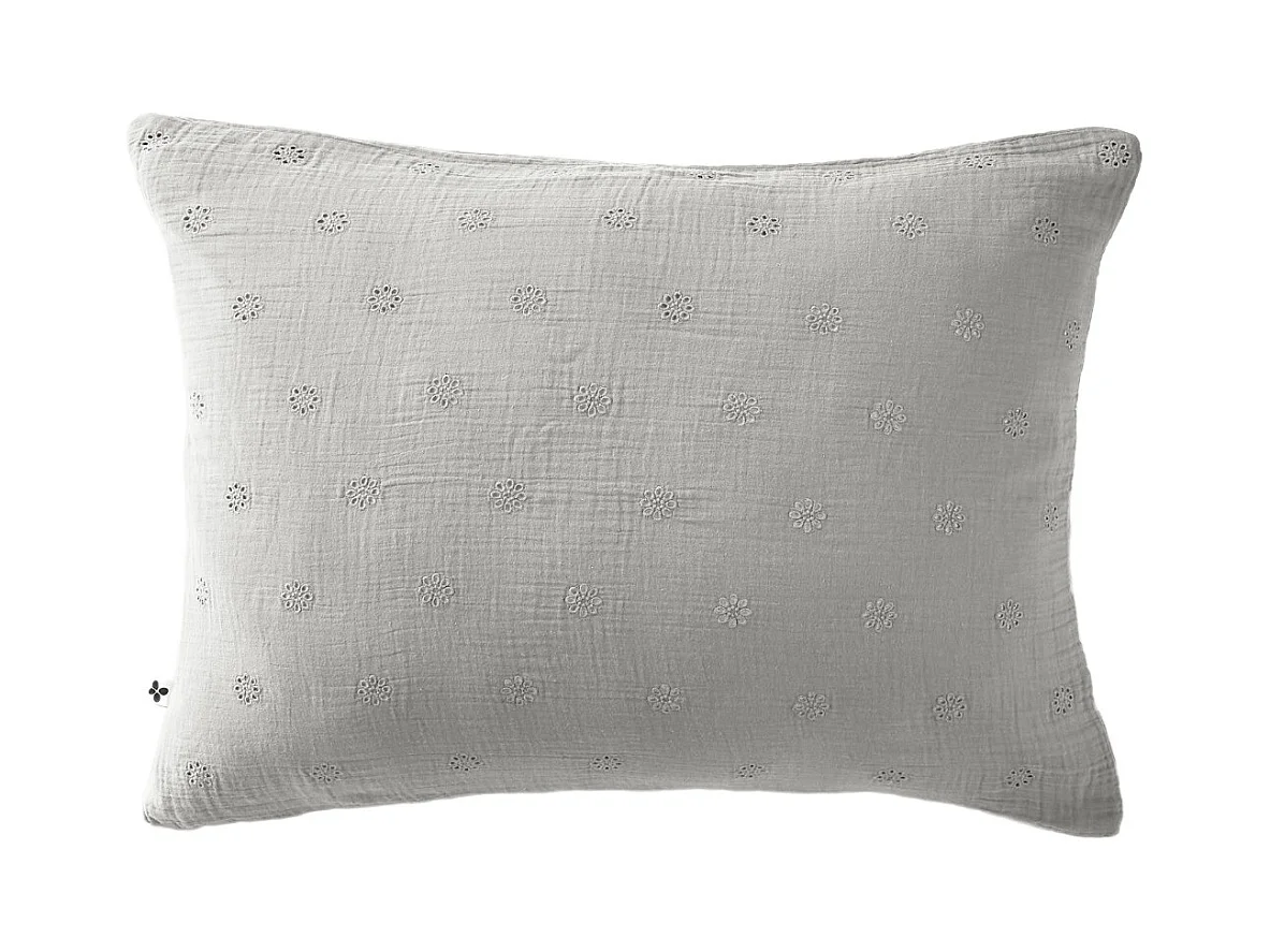 Taie d'oreiller brodée double gaze de coton gris 50x70 cm