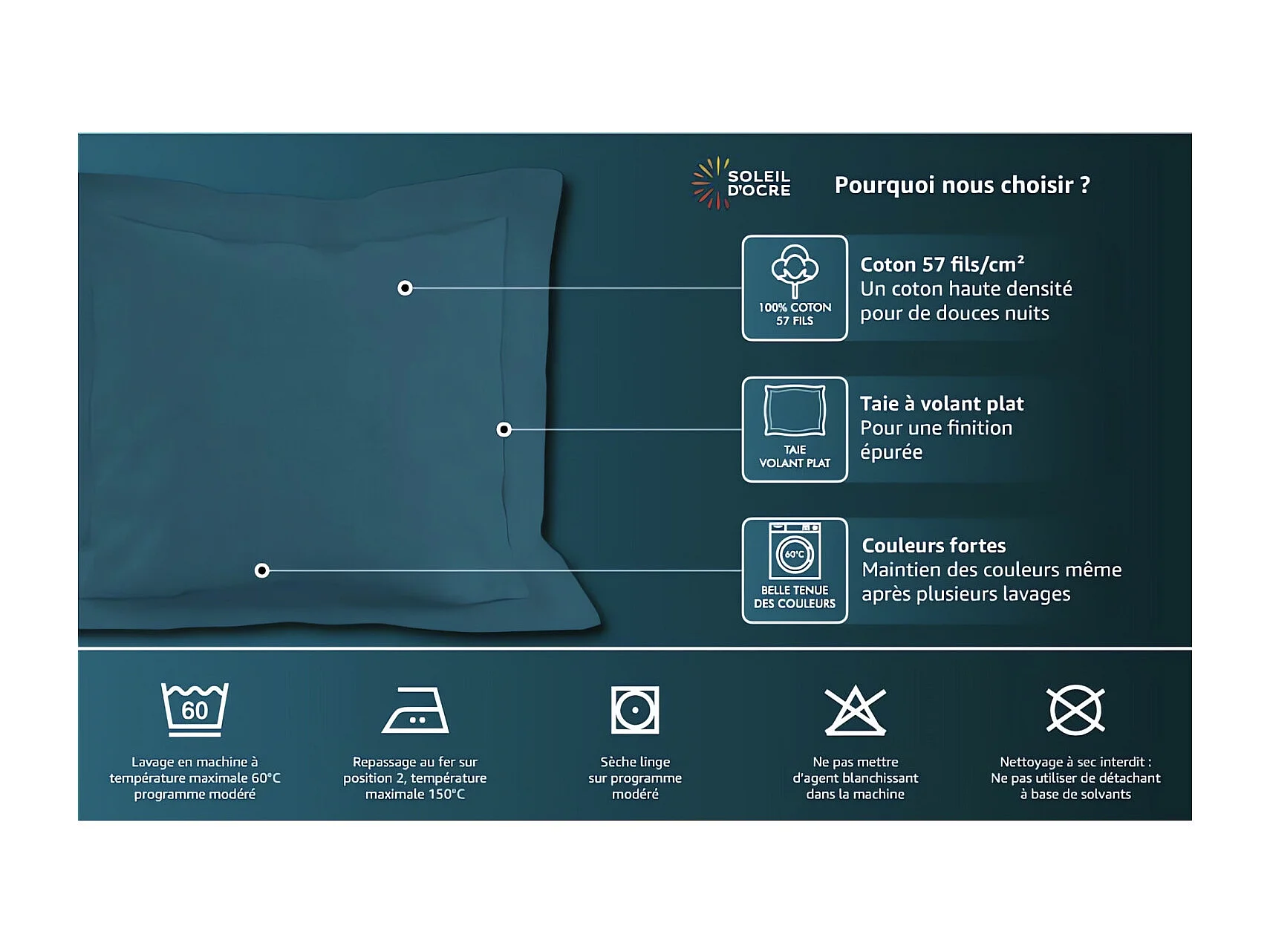 Taie d'oreiller en coton 57 fils 50x70 cm UNI vieux rose, par Soleil d'ocre