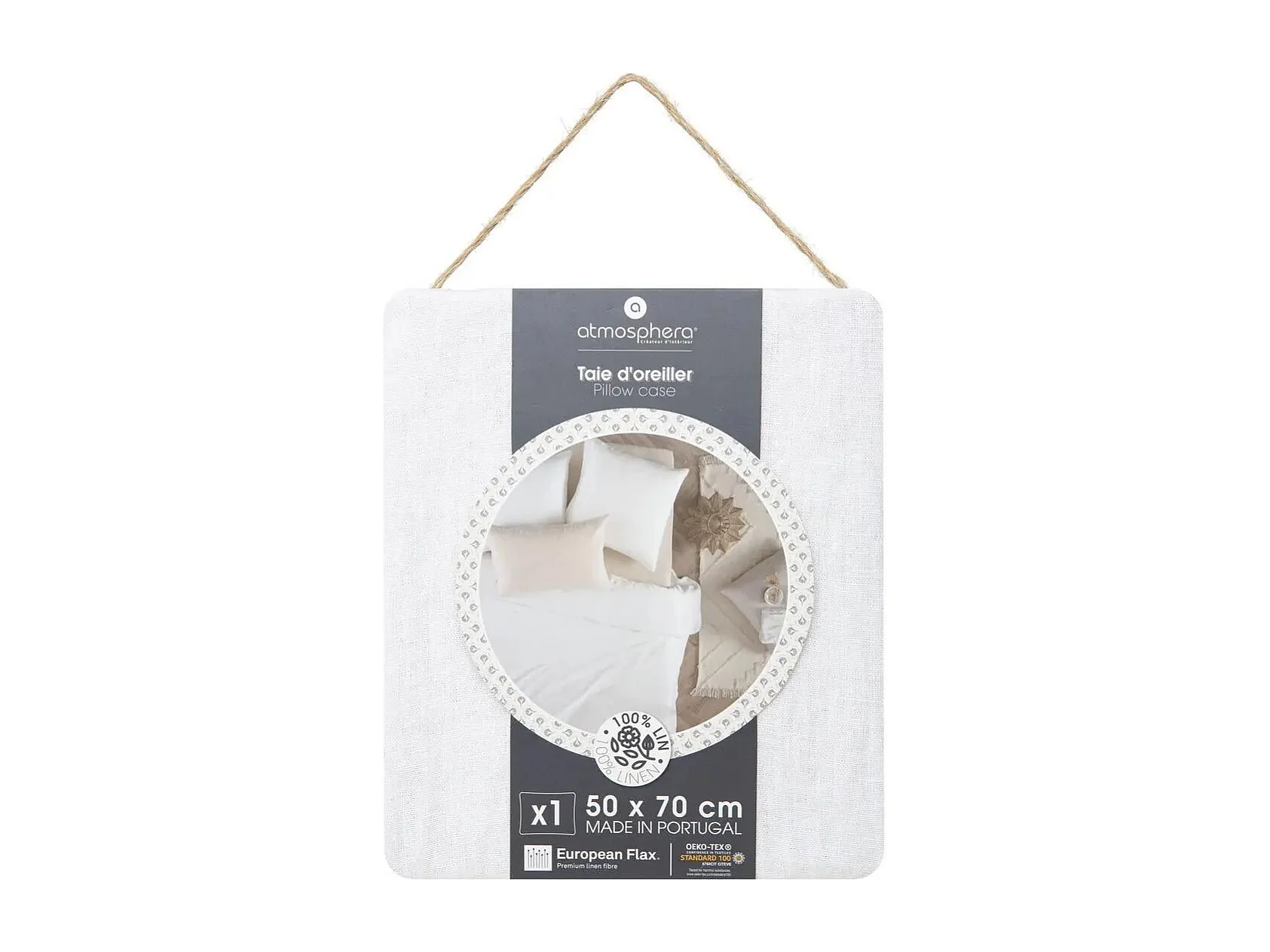 Taie d'oreiller lin et coton 50x70 cm collection OPERA blanc neige