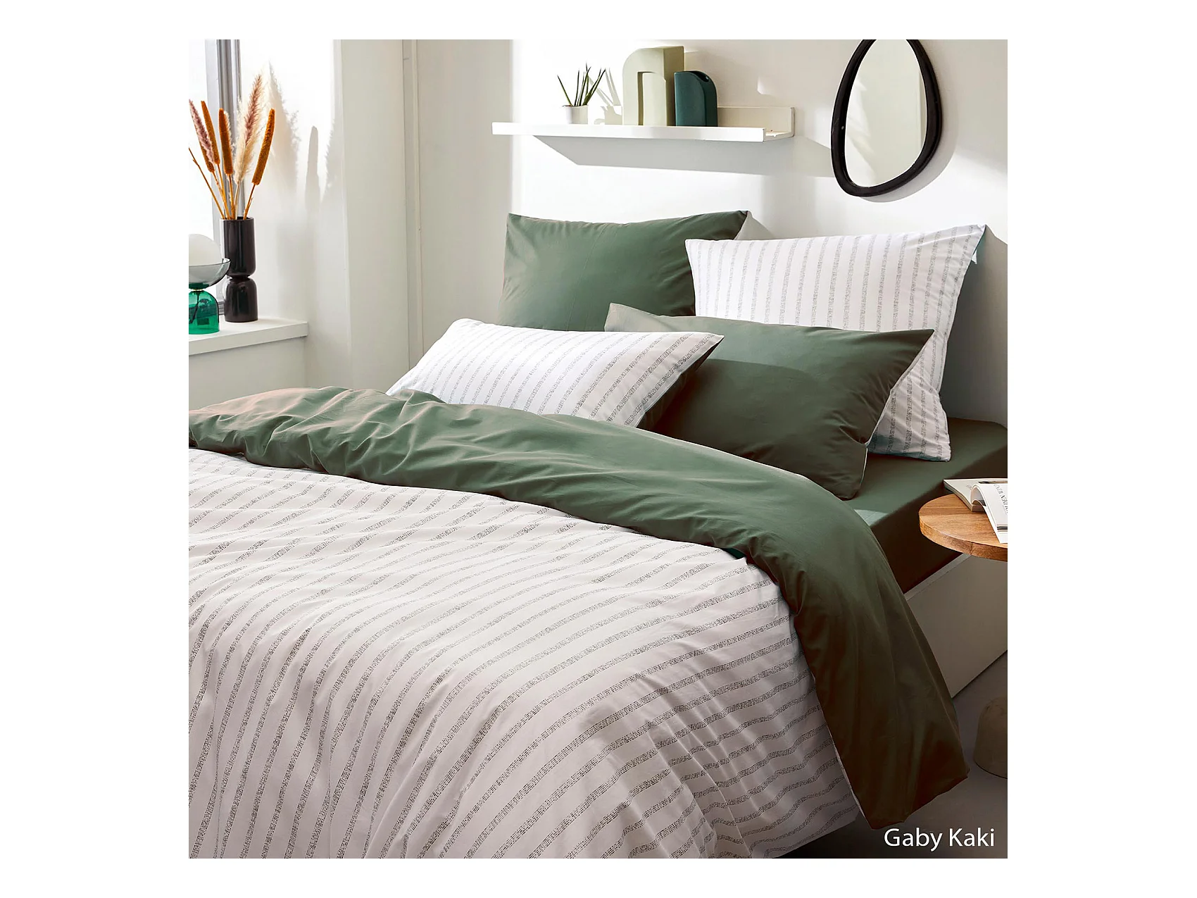 Housse de couette 2 Personnes en Coton Vert Kaki 240 x 220 cm