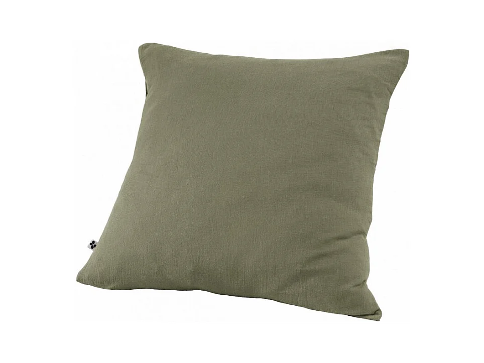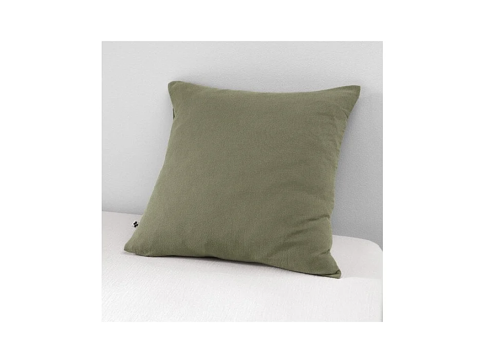 Taie d'oreiller brodée double gaze de coton kaki 60x60 cm