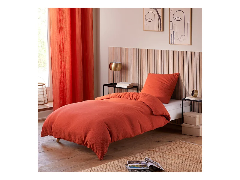 Lot de 2 taies d'oreiller coton lavé - SOMEO Terracotta 50x70 - CELESTE