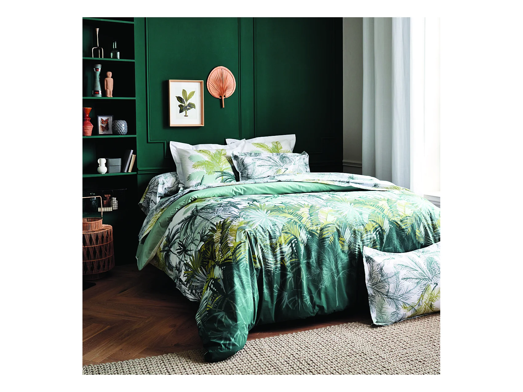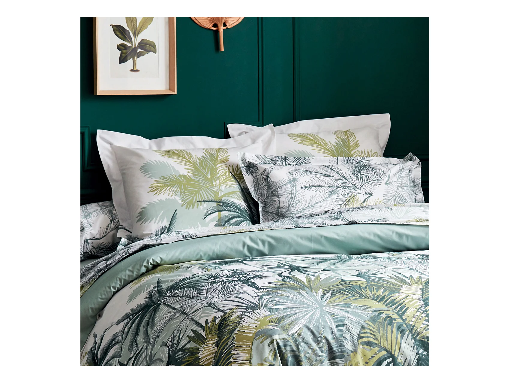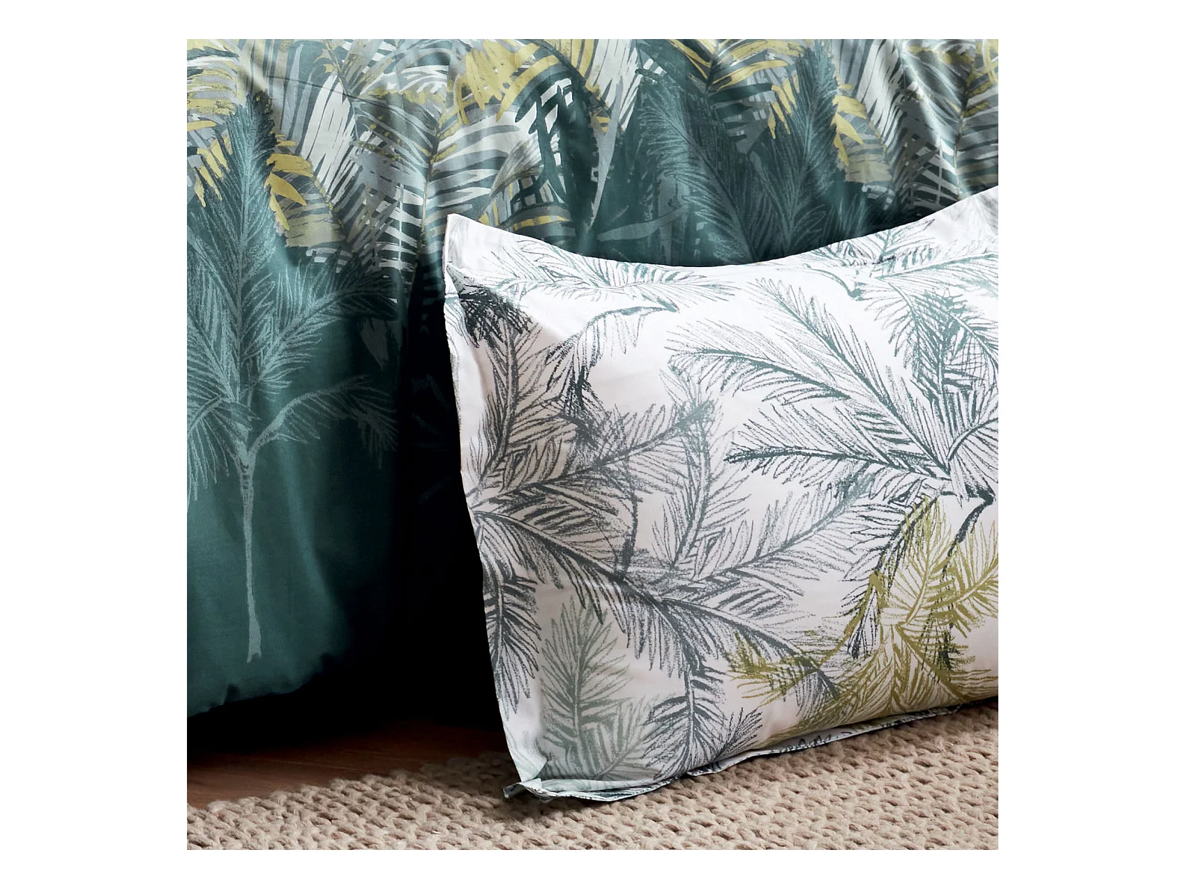 Parure de lit 2 personnes imprimé feuillage réversible 240x220cm