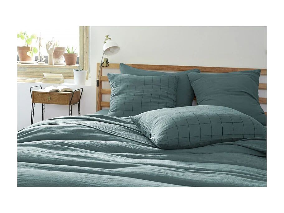 Taie d'oreiller Tissé-teint grands carreaux Déco "Gaïa Match" 60 x 60 cm & 50 x 70 cm "Gaze de Coton" l'Effet Papillon
