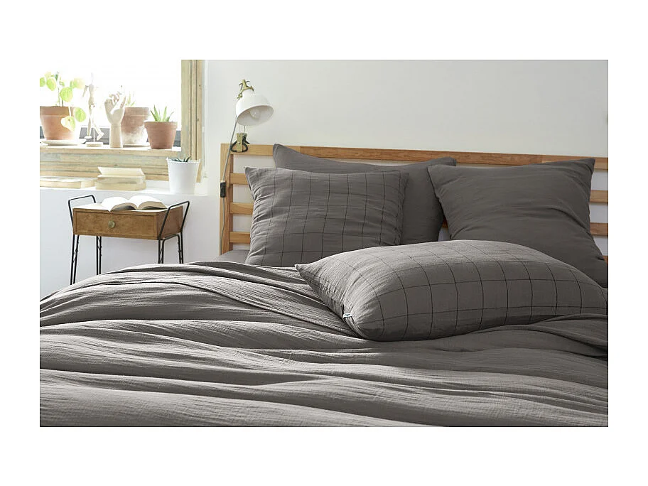 Taie d'oreiller double gaze de coton gris 50x70 cm