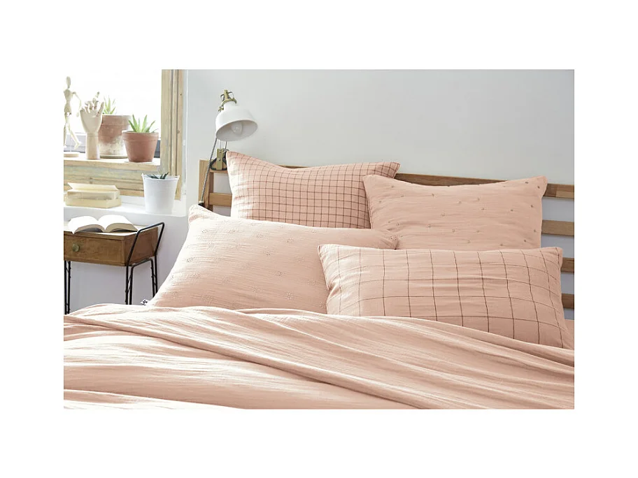 Taie d'oreiller Tissé-teint petits carreaux Déco "Gaïa Mix" 60 x 60 cm & 50 x 70 cm "Gaze de Coton"