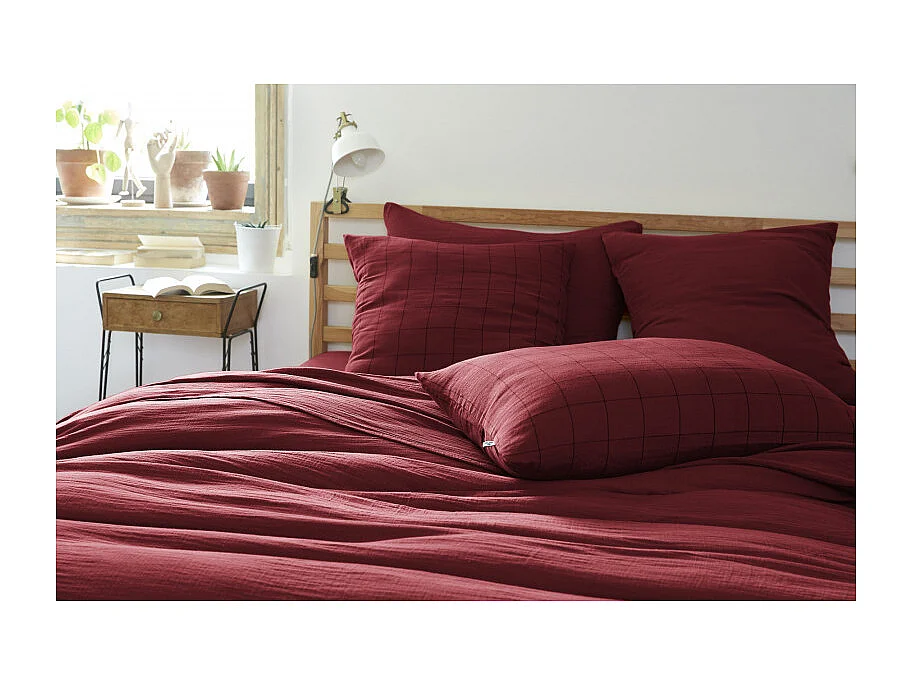 Taie d'oreiller double gaze de coton bordeaux 60x60 cm