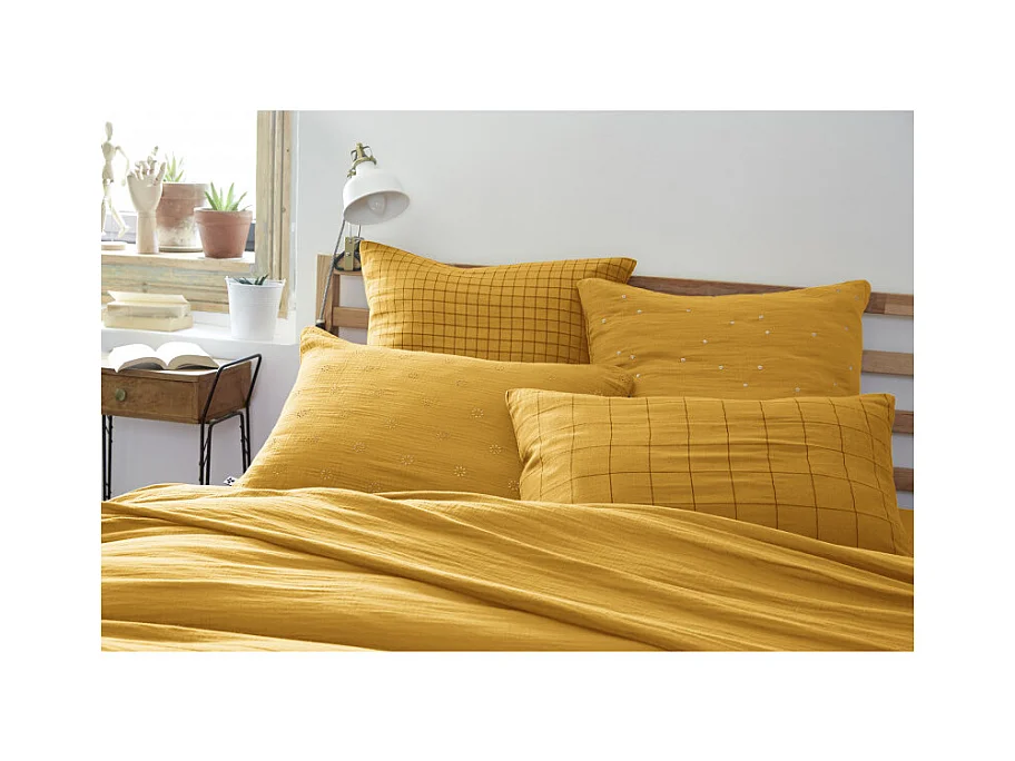 Taie d'oreiller Tissé-teint petits carreaux Déco "Gaïa Mix" 60 x 60 cm & 50 x 70 cm "Gaze de Coton"