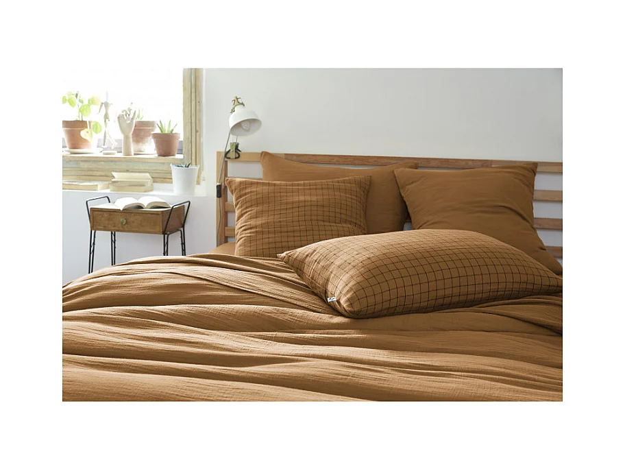 Taie d'oreiller Tissé-teint petits carreaux Déco "Gaïa Mix" 60 x 60 cm & 50 x 70 cm "Gaze de Coton"