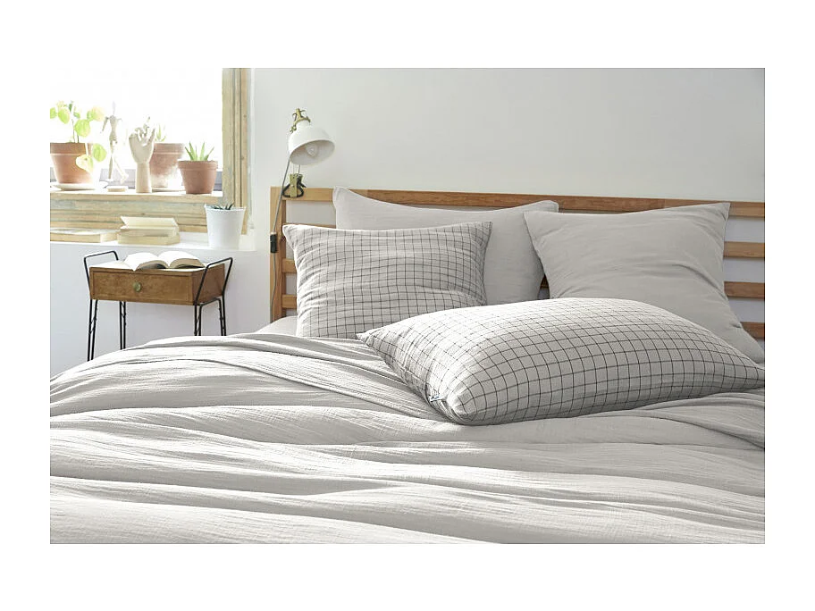 Taie d'oreiller Tissé-teint petits carreaux Déco "Gaïa Mix" 60 x 60 cm & 50 x 70 cm "Gaze de Coton" l'Effet Papillon