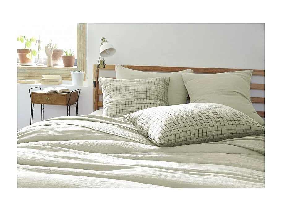 Taie d'oreiller Tissé-teint petits carreaux Déco "Gaïa Mix" 60 x 60 cm & 50 x 70 cm "Gaze de Coton" l'Effet Papillon