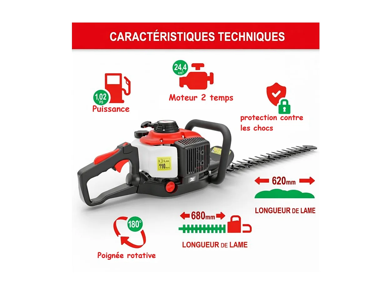 Taille haie essence 2 temps longeur de coupe 62cm 5,5kg