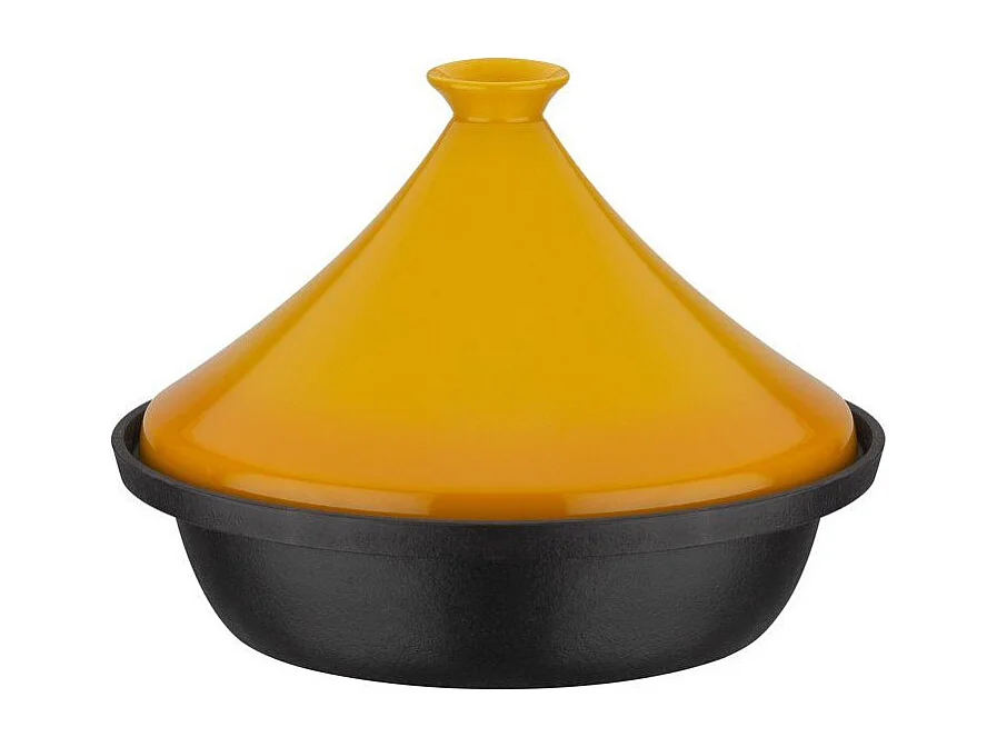 Tajine - GSW - 717434 - Ø30 cm - Fonte d'acier massive - Induction - Couvercle céramique - Noir / Jaune