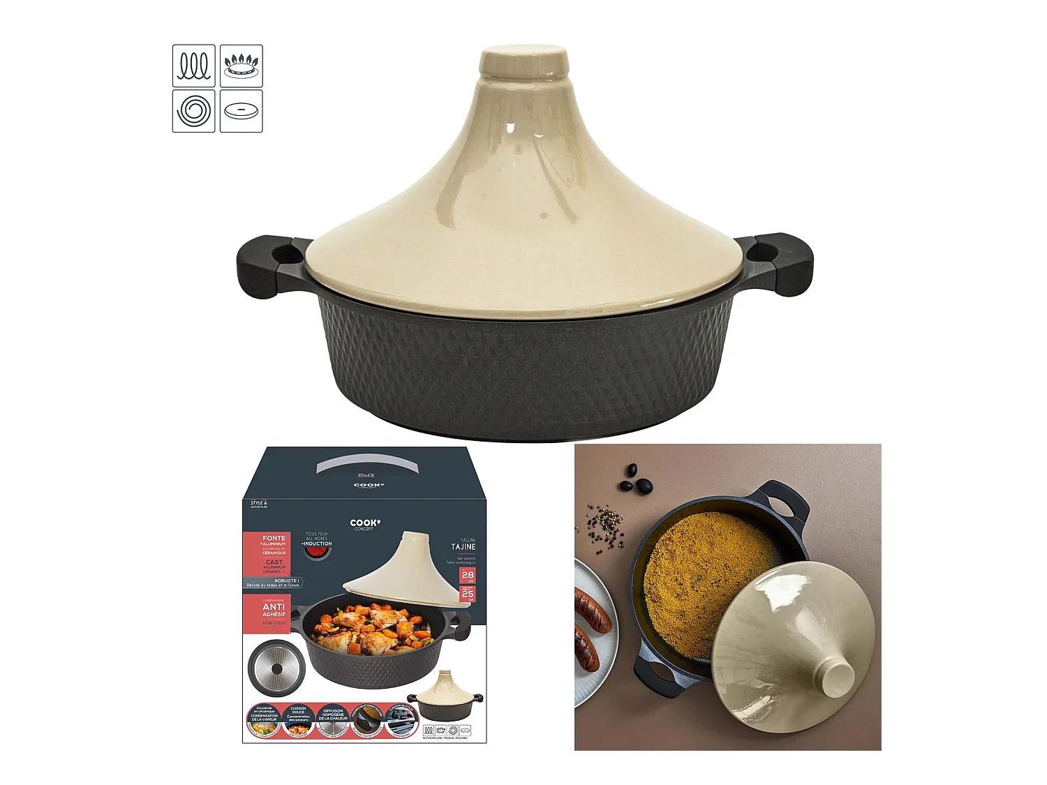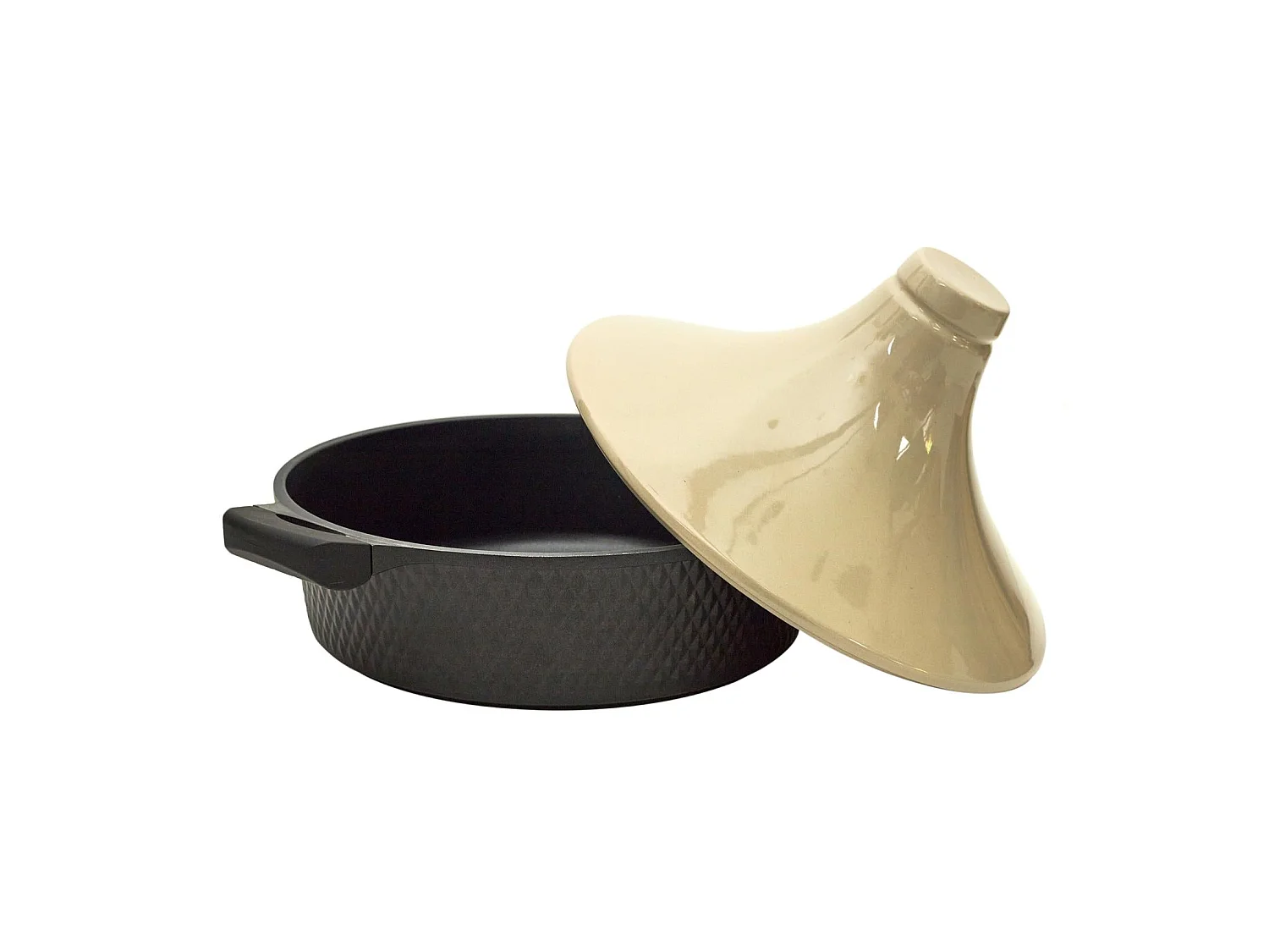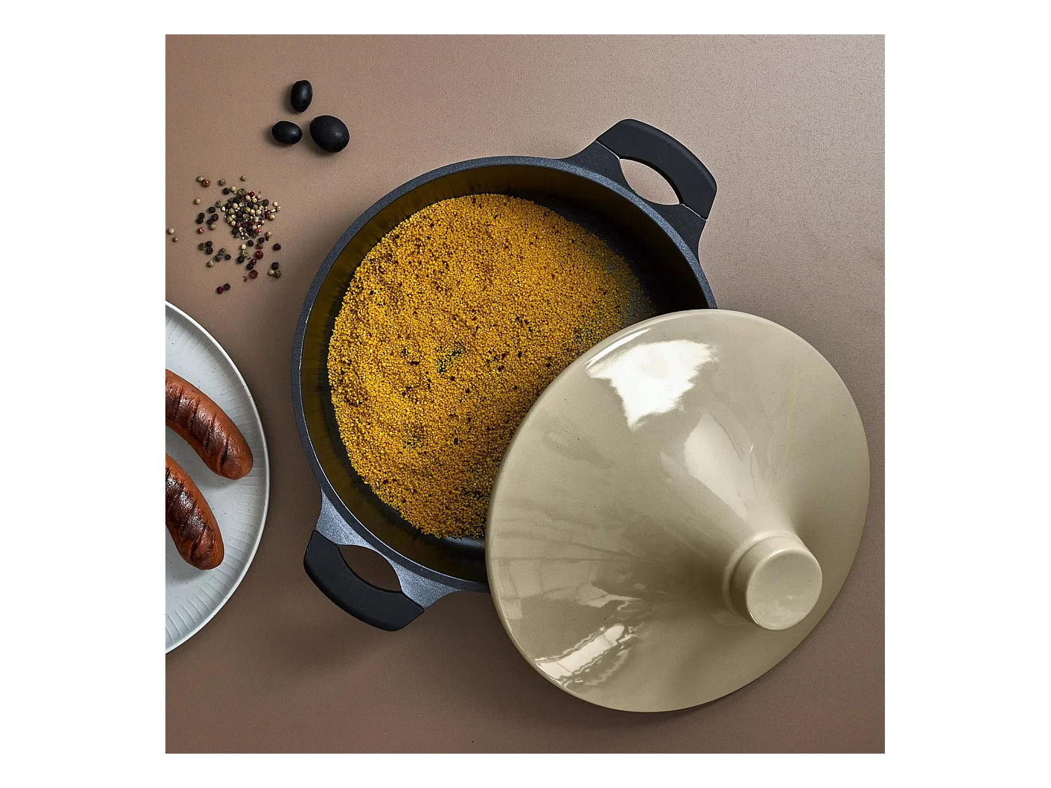 Plat à Tajine en Fonte d'Aluminium et Céramique Bicolore avec Poignées - HADIL