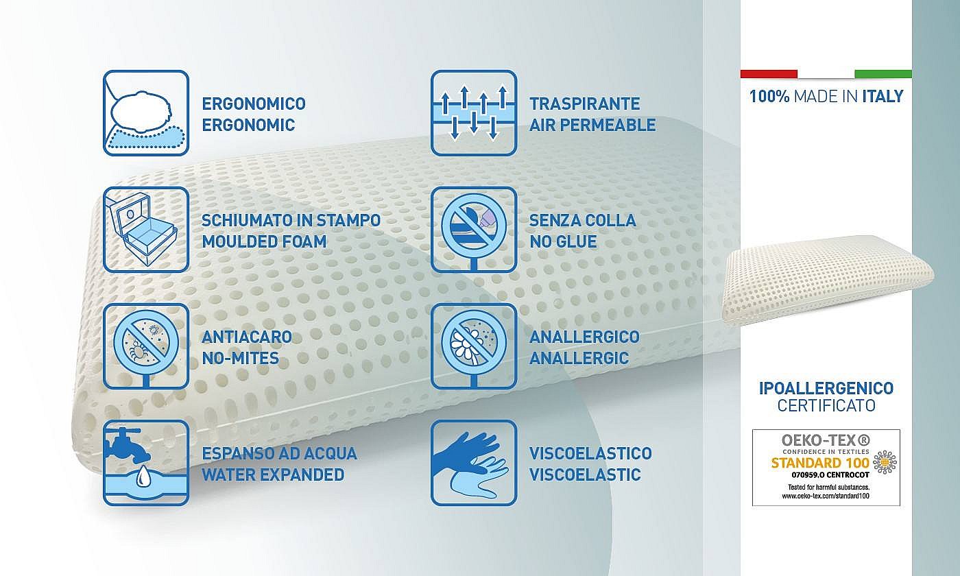 Talamo Italia - Set di 2 guanciali Basilico, 70x40 h16 cm, Bianco
