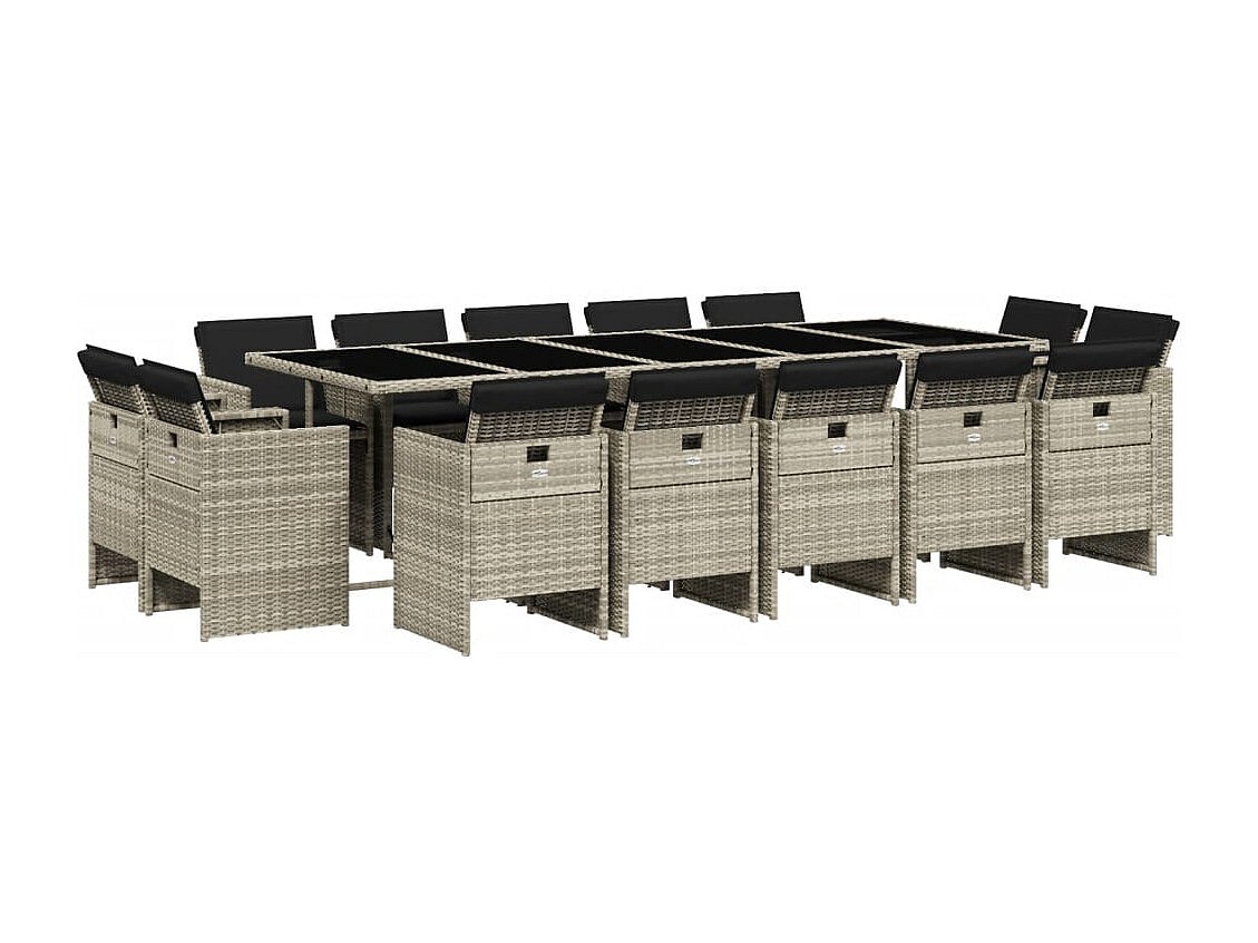 Tallulah Ensemble à manger de jardin et coussins 15 pcs gris clair rotin
