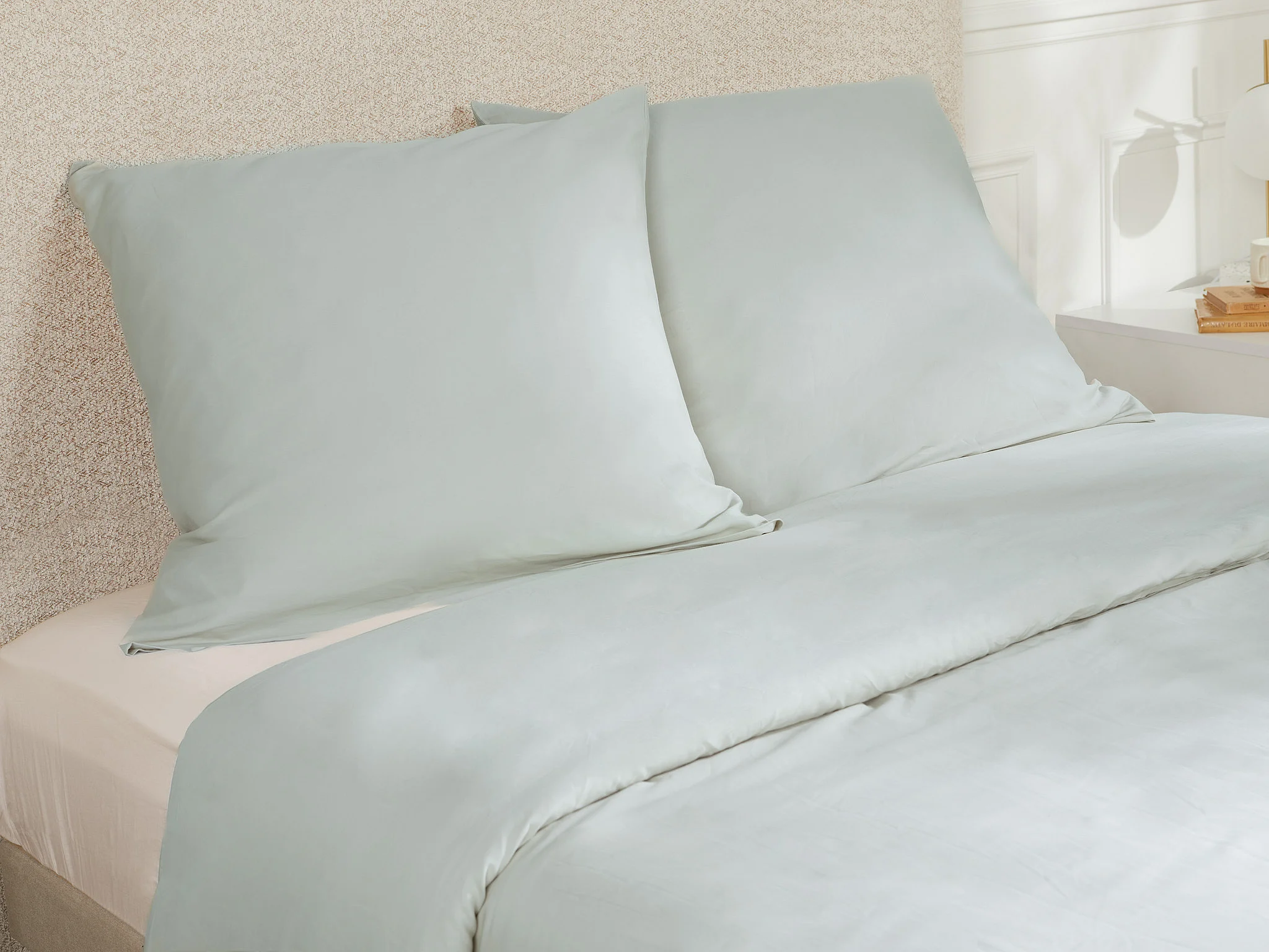 Parure de lit en satin 108 fils/cm² - Housse de couette 240 x 260 cm + 2 taies d'oreiller 63 x 63 cm - Gris clair - TALORA de PALACIO
