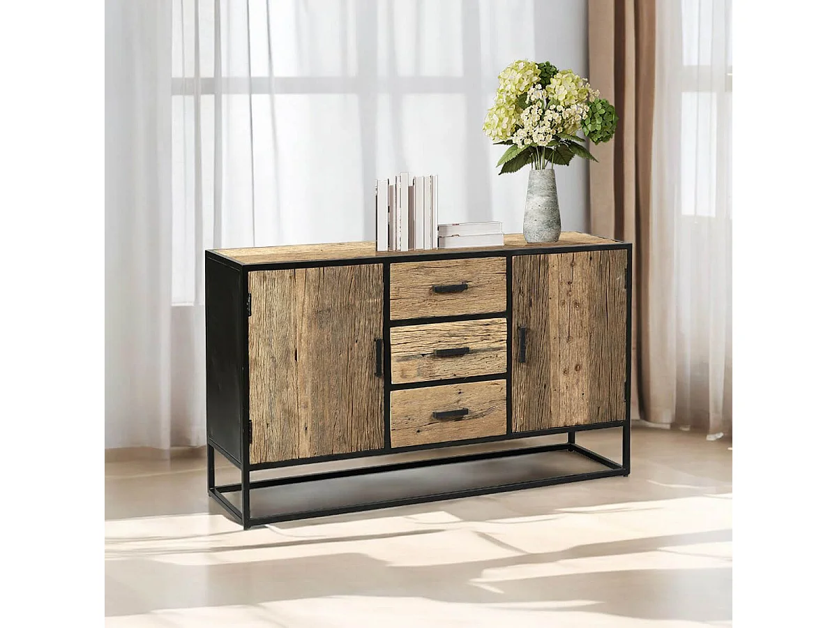 TANETOA - Buffet 2 Portes 3 Tiroirs en Teck Recyclé et Métal