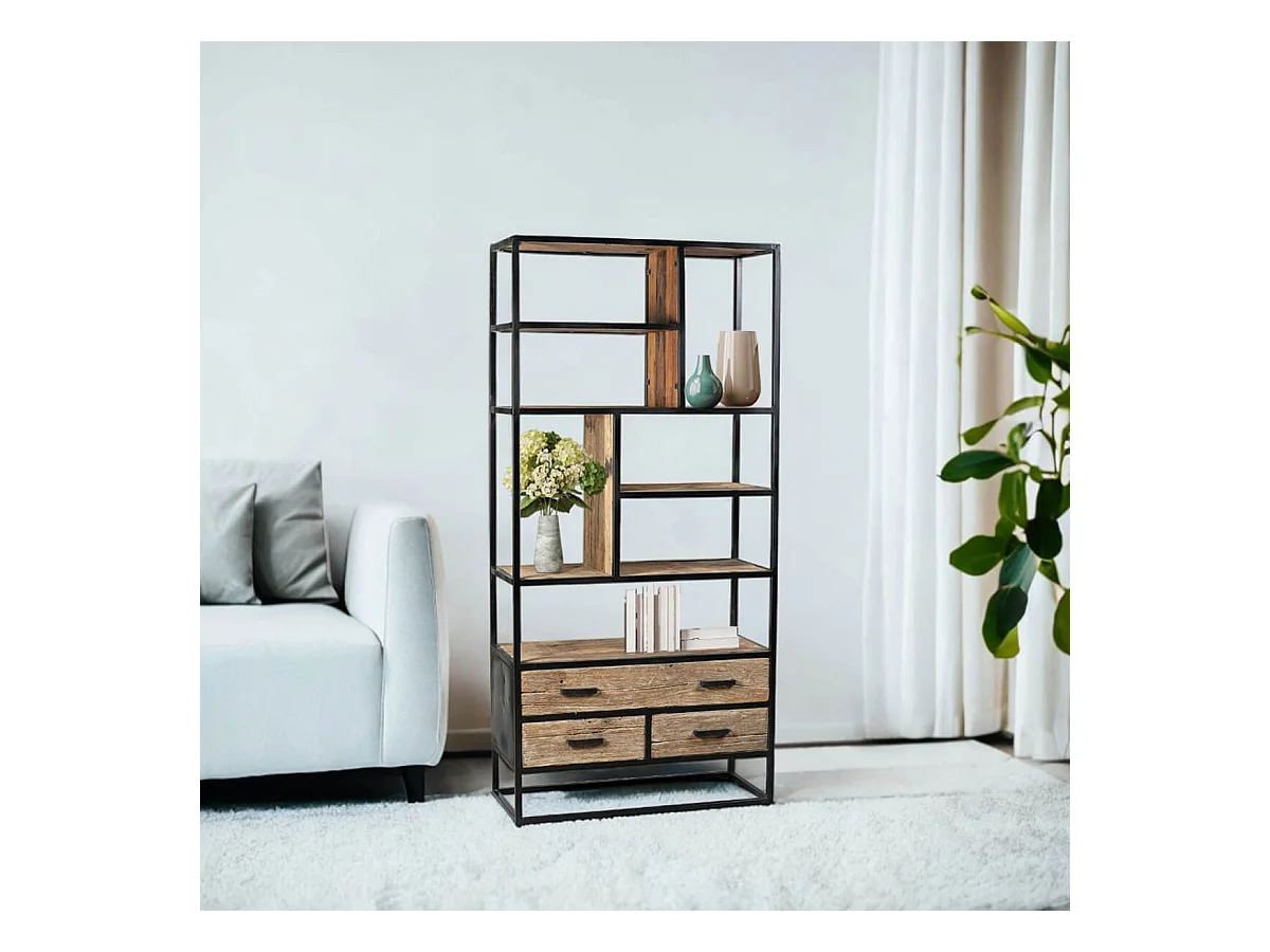 TANETOA - Etagère 3 Tiroirs en Teck Recyclé et Métal