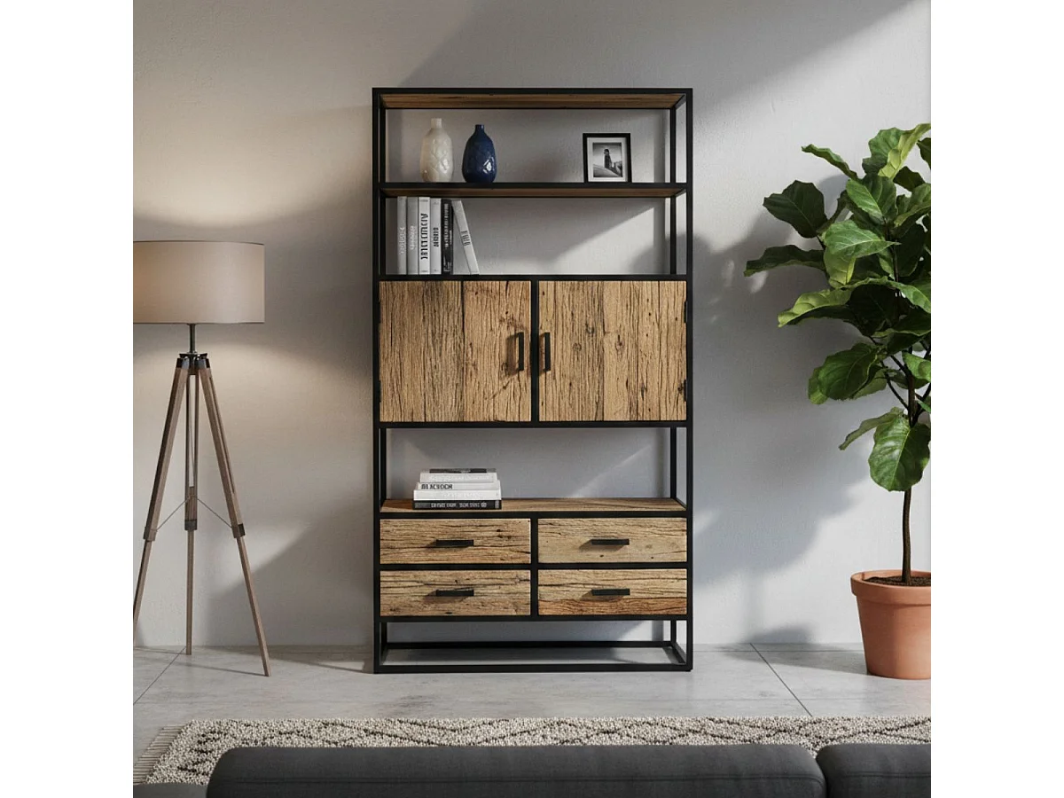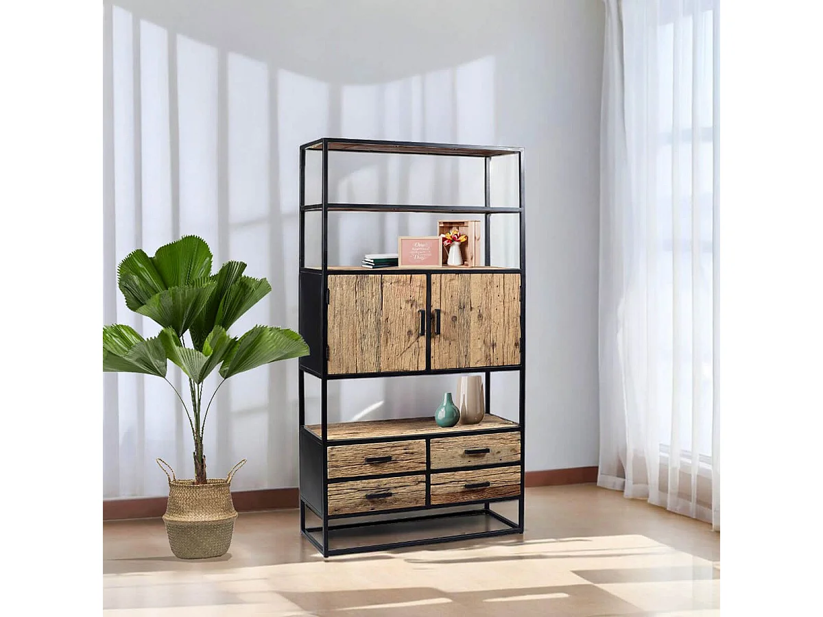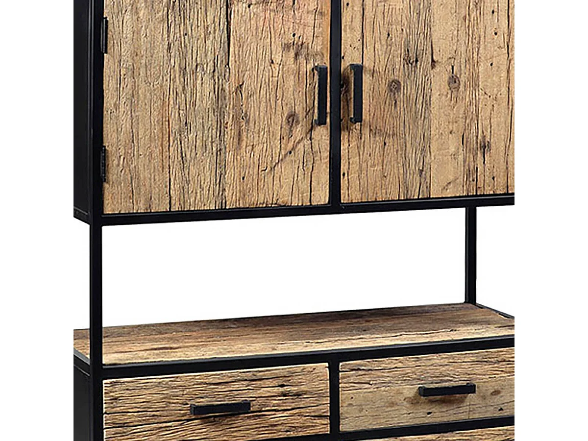 TANETOA - Vaisselier 2 Portes 4 Tiroirs en Teck Recyclé