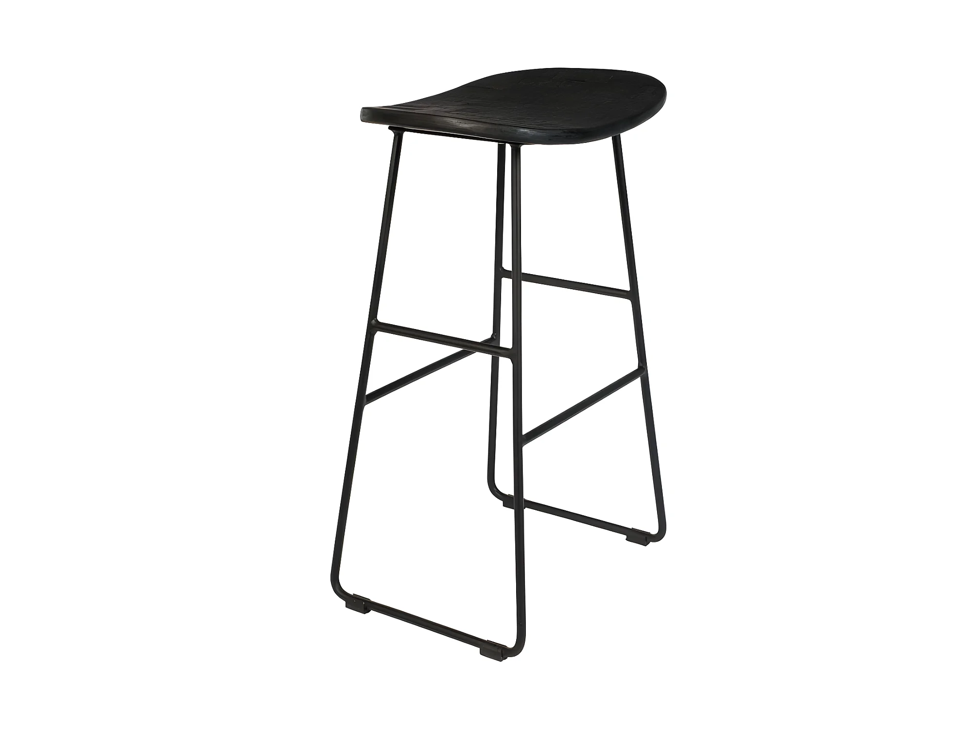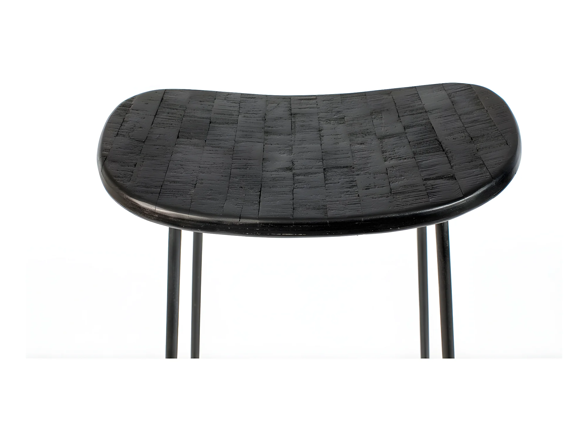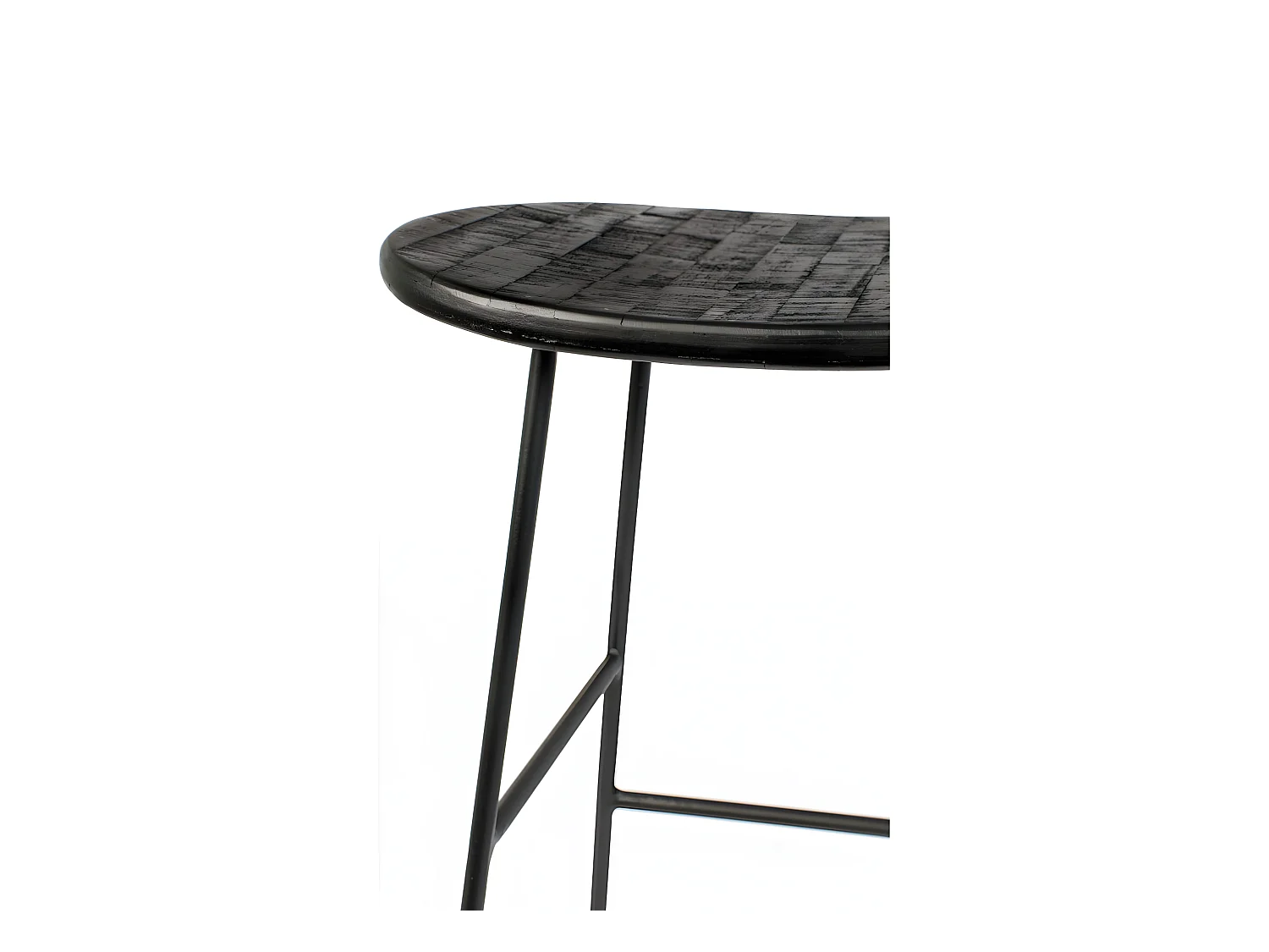 Tangle - Tabouret de bar en teck recyclé et métal H62cm - Noir