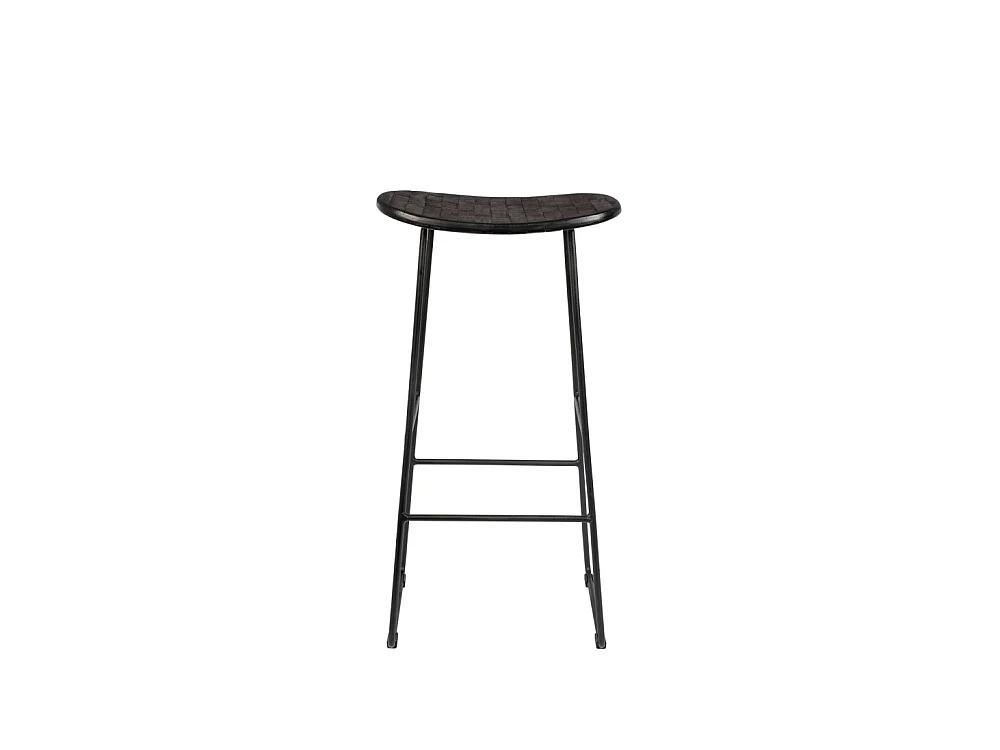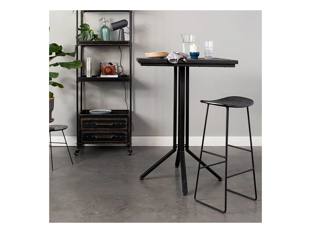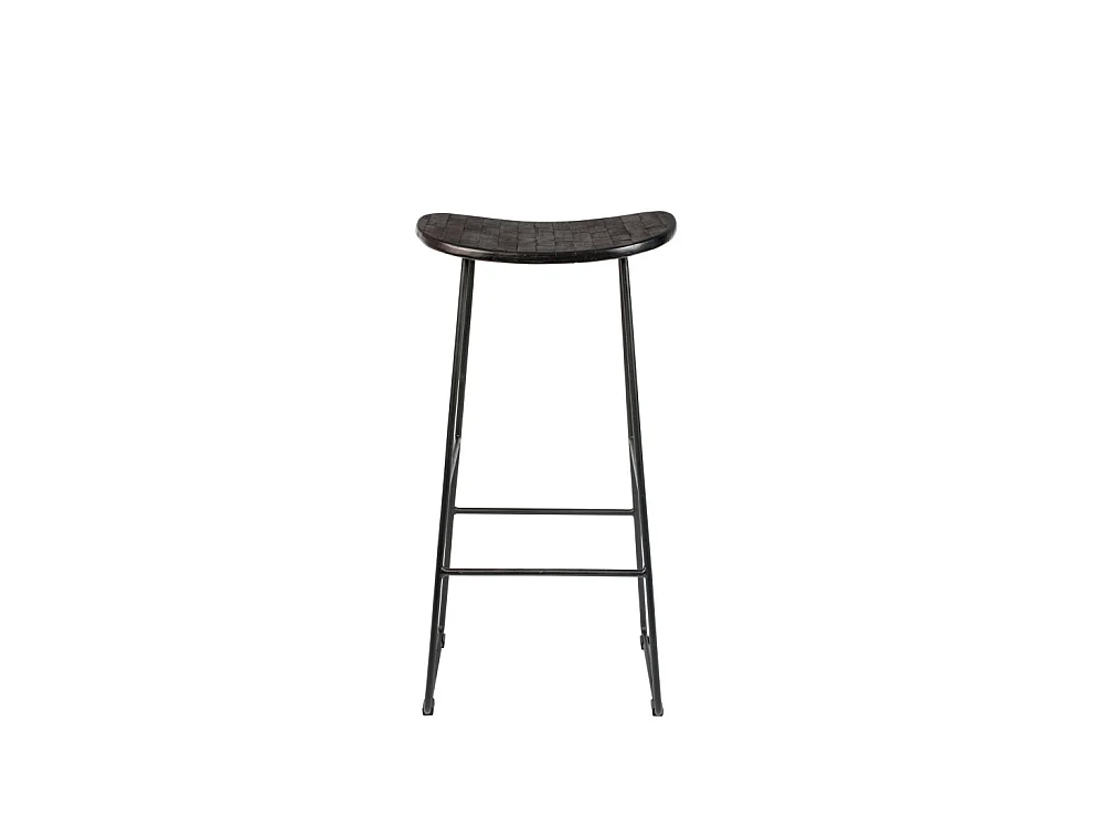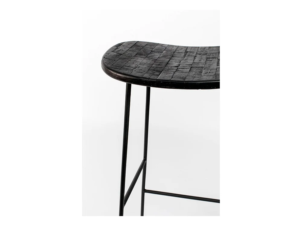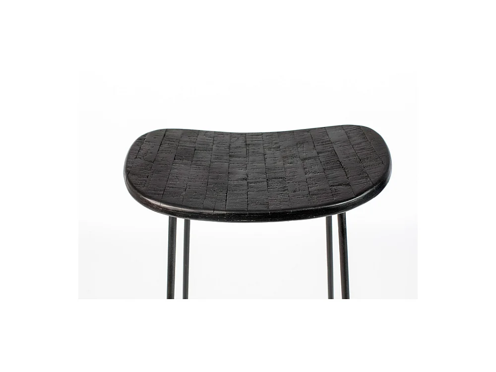 Tangle - Tabouret de bar en teck recyclé et métal H76cm - Noir