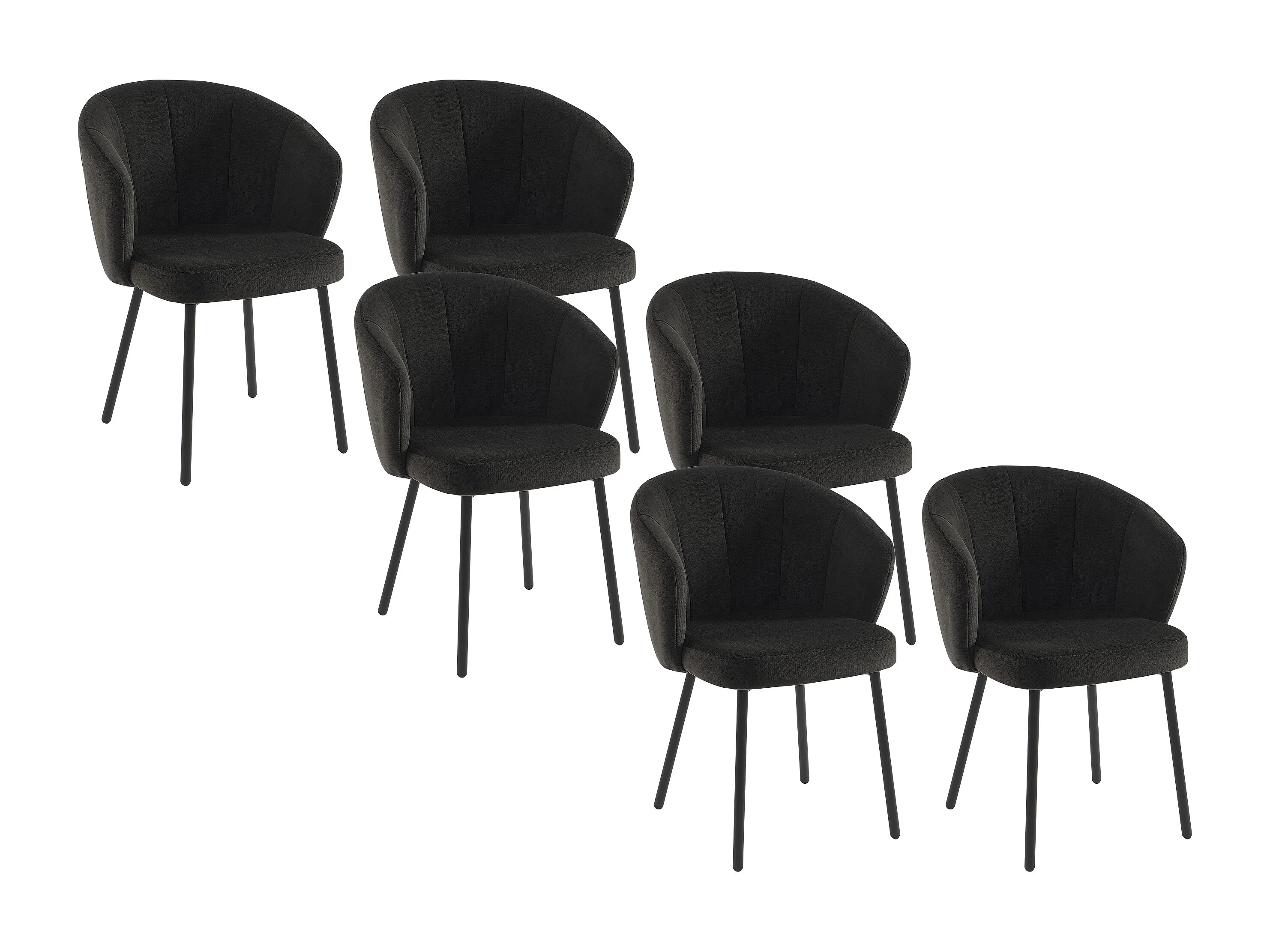 Lot de 6 chaises en tissu et métal - Noir - TANURY