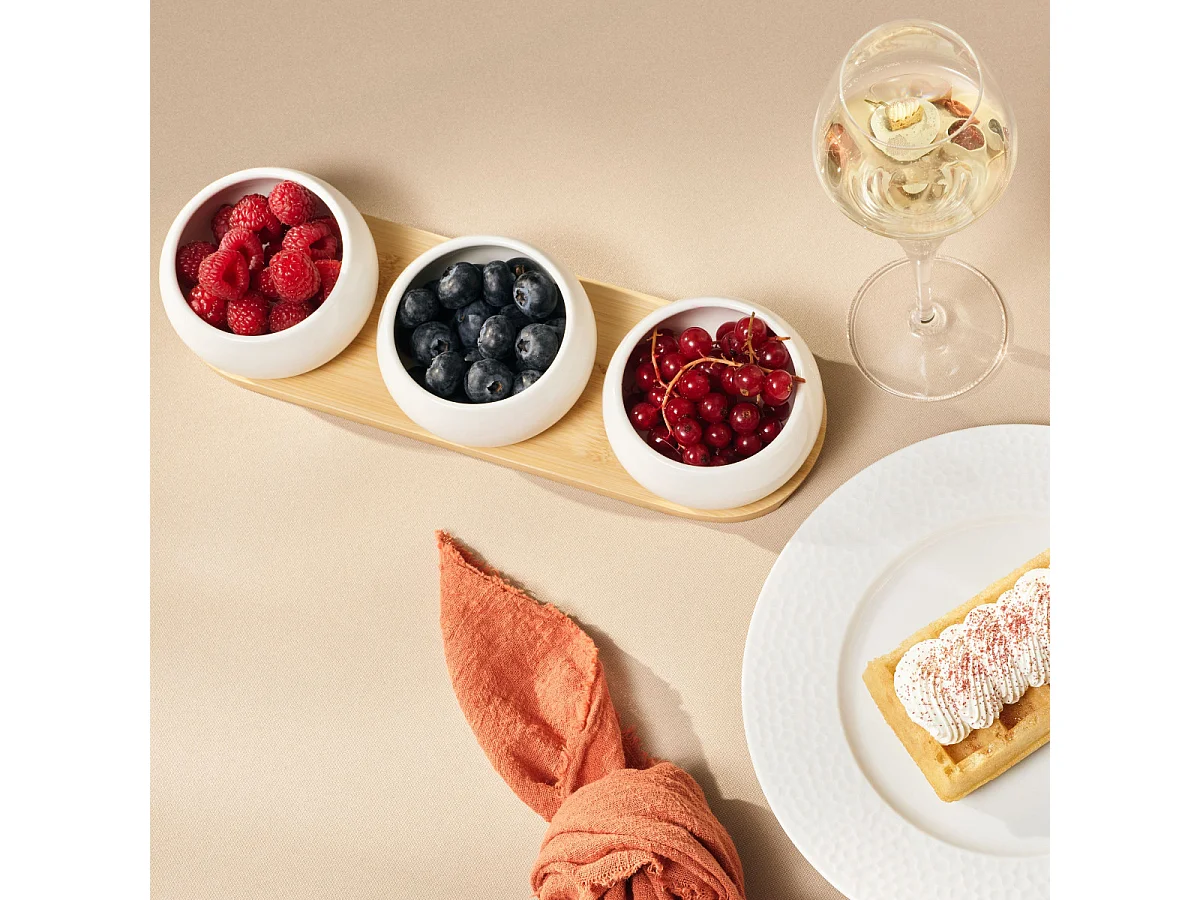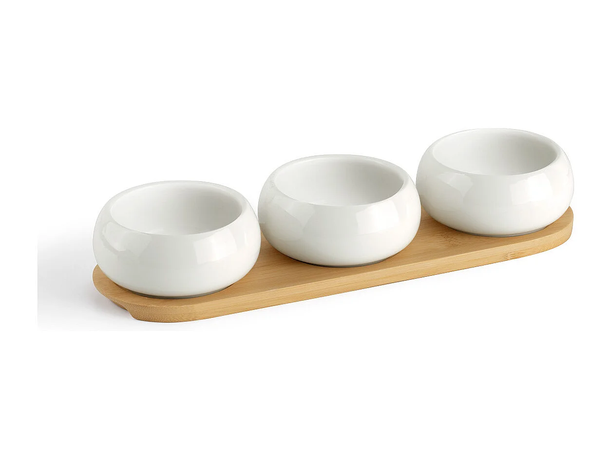 Tapas - Set de 3 coupelles apéritives en céramique avec plateau en bambou