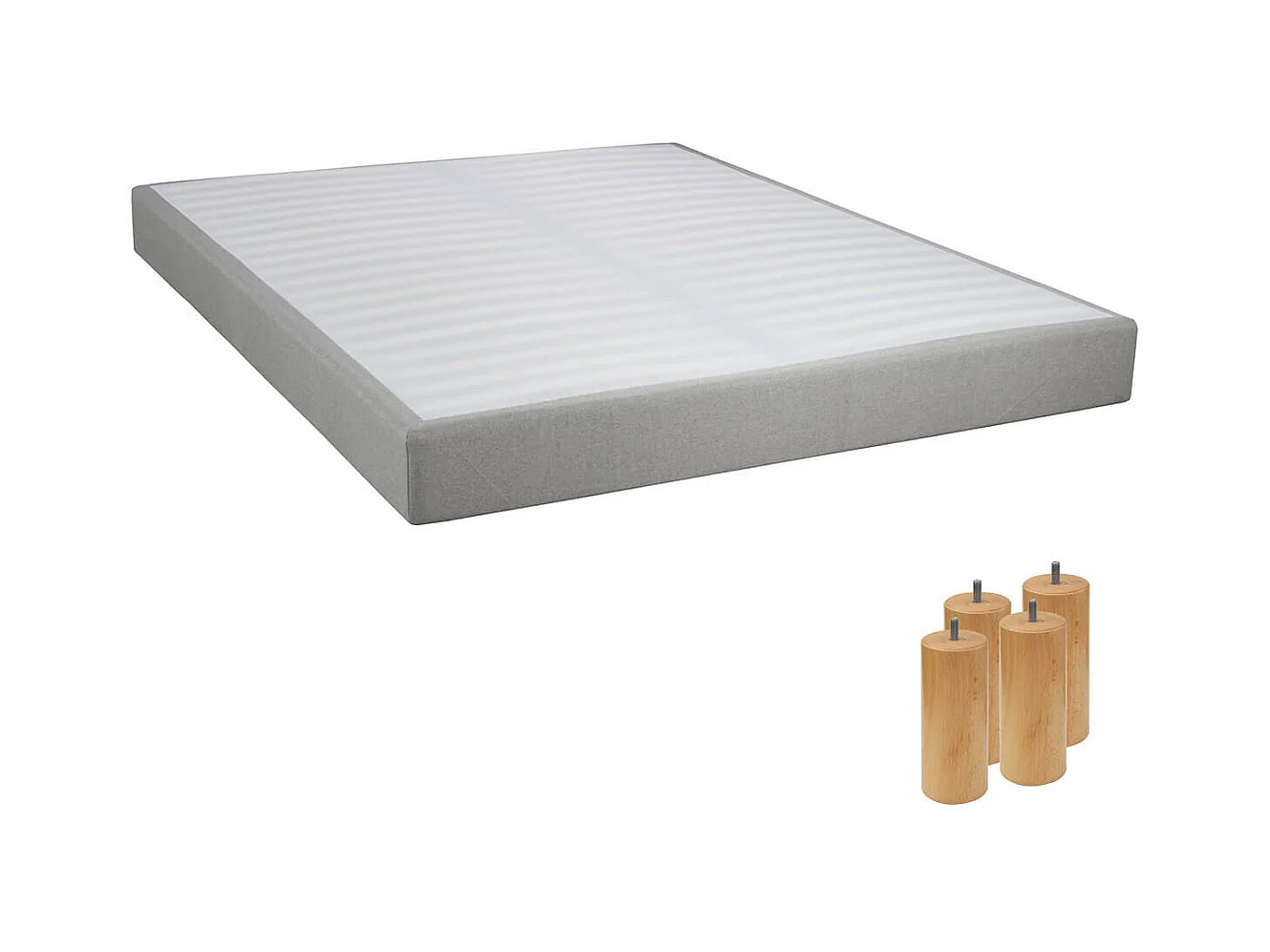 TAPIKIT - Sommier Tapissier Démontable 2x20 Lattes 160x200cm Lin + Pieds Bois 15cm