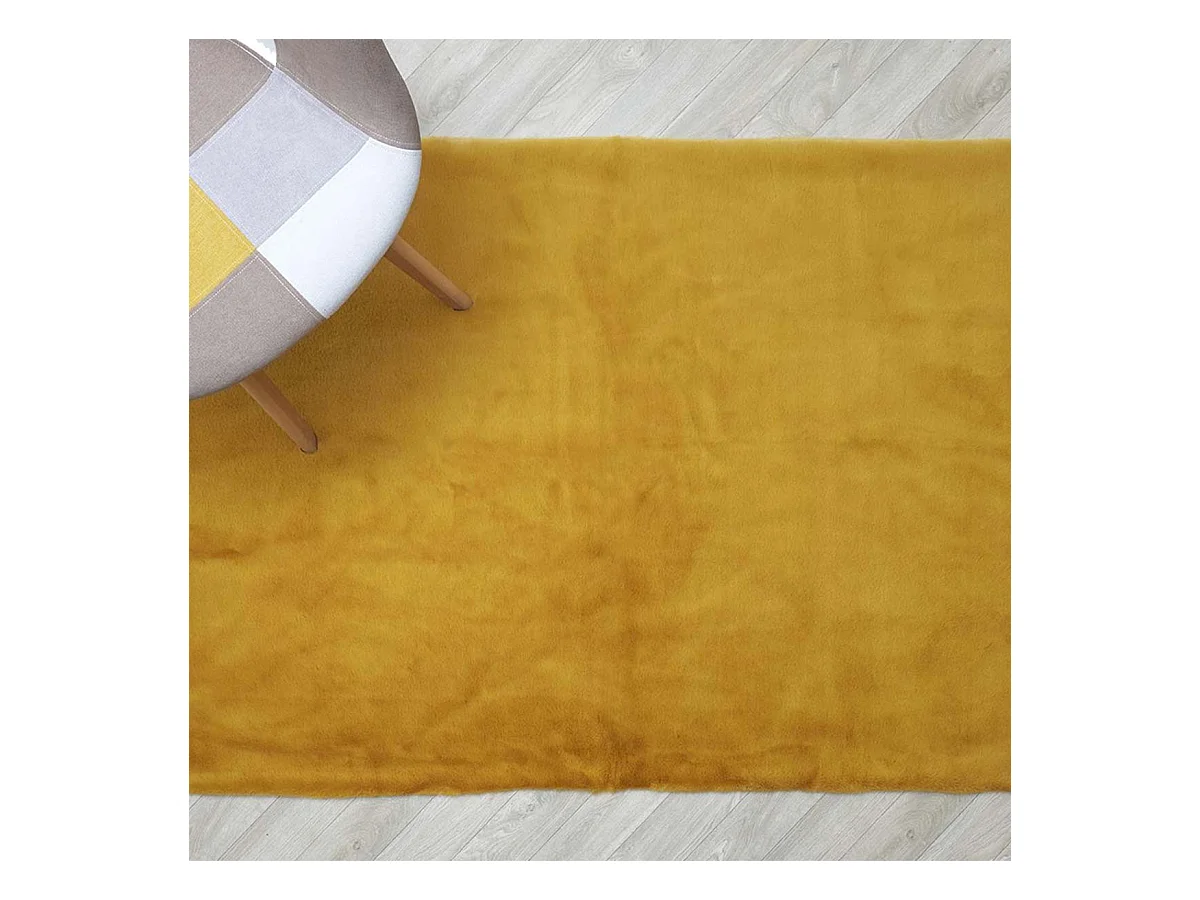 Tapis 120x170cm Imitation Fourrure Fine Jaune Moutarde - SNUGLY