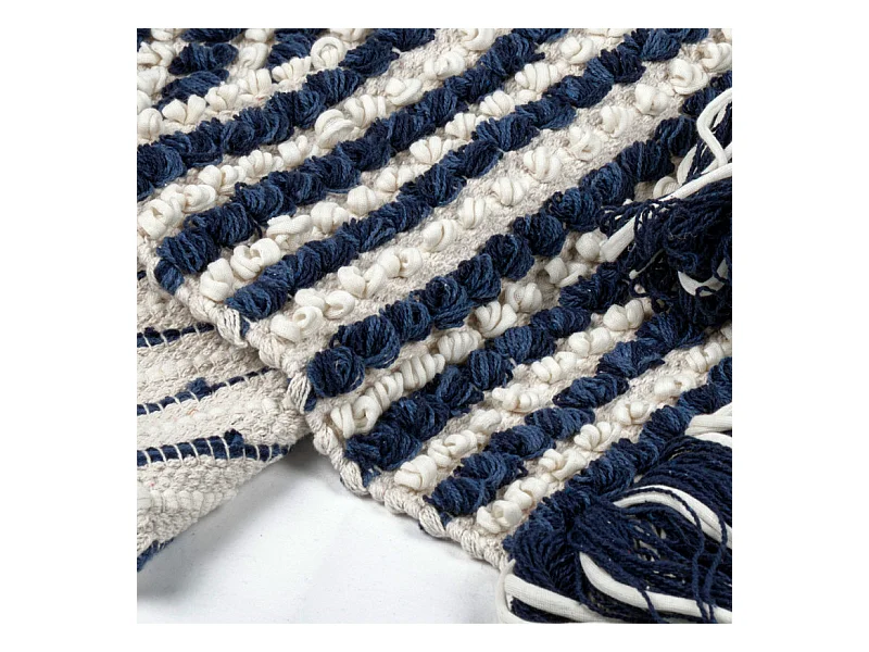 Tapis 60 x 80 cm texturé bleu marine et blanc avec franges – SOHO