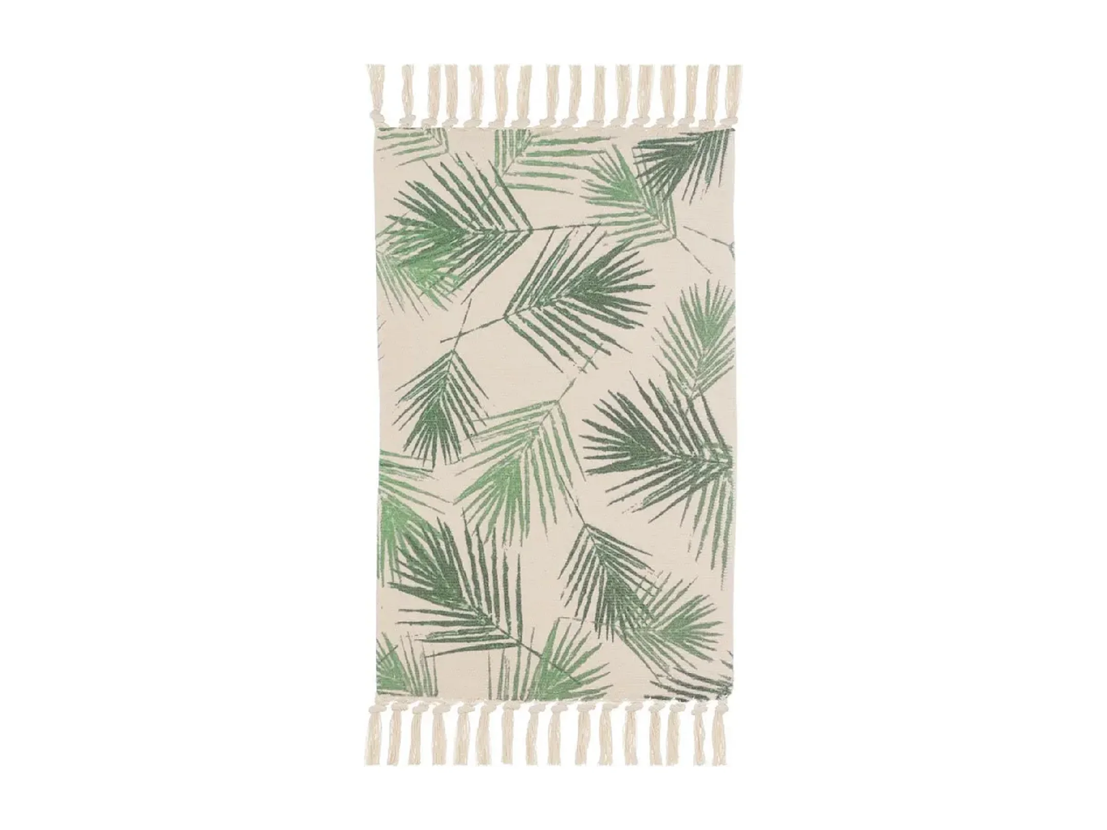 Tapis à franges avec pompons, moquette en polyester-coton imprimé coloris beige/vert - Longueur 80 x Profondeur 50 cm