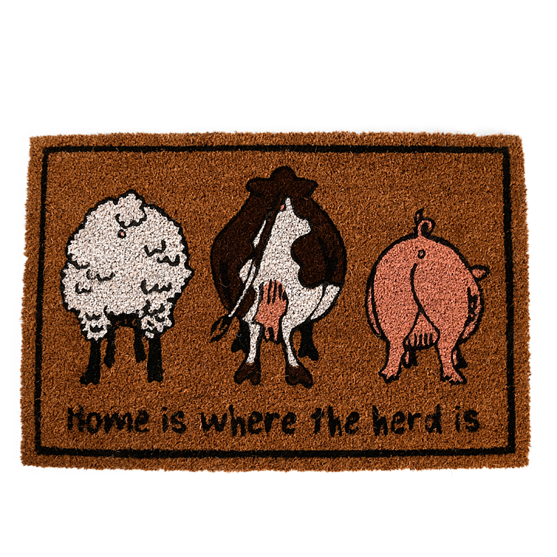 Tapis à imprimé aniaml en fibre de coco - Home is where the herd is - Marron - L 60,5 x l 40,2 cm