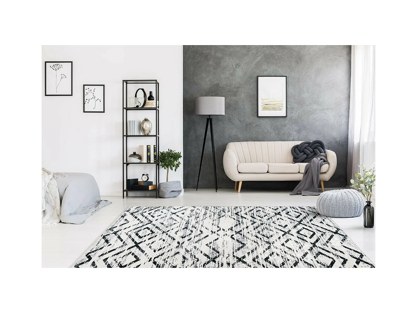 Tapis Géométrique à Poils Courts "Sally" Noir & Blanc 200 x 290 cm