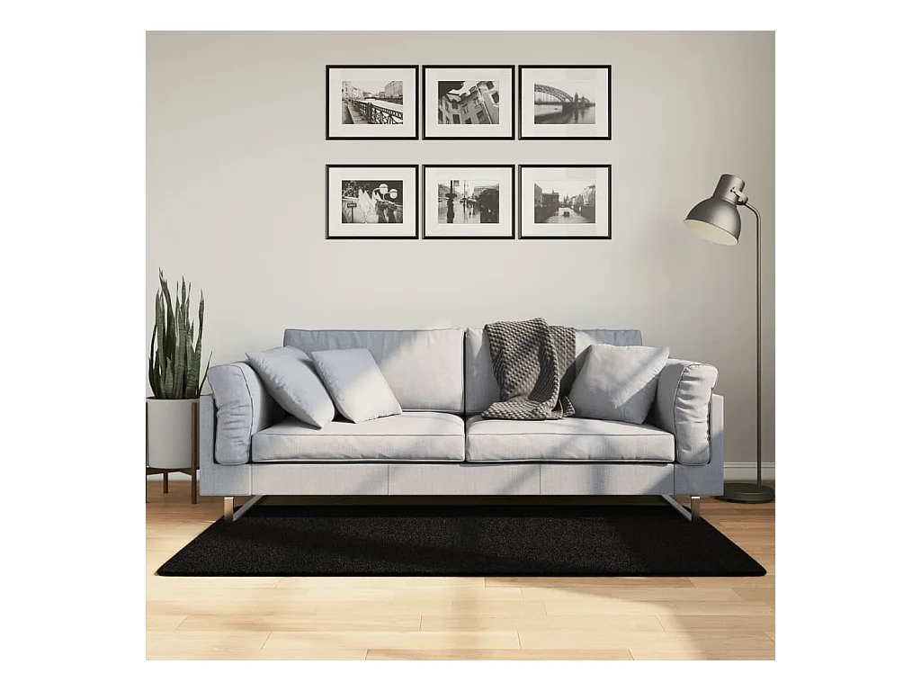 Tapis à poils courts doux et lavable noir 140x200 cm