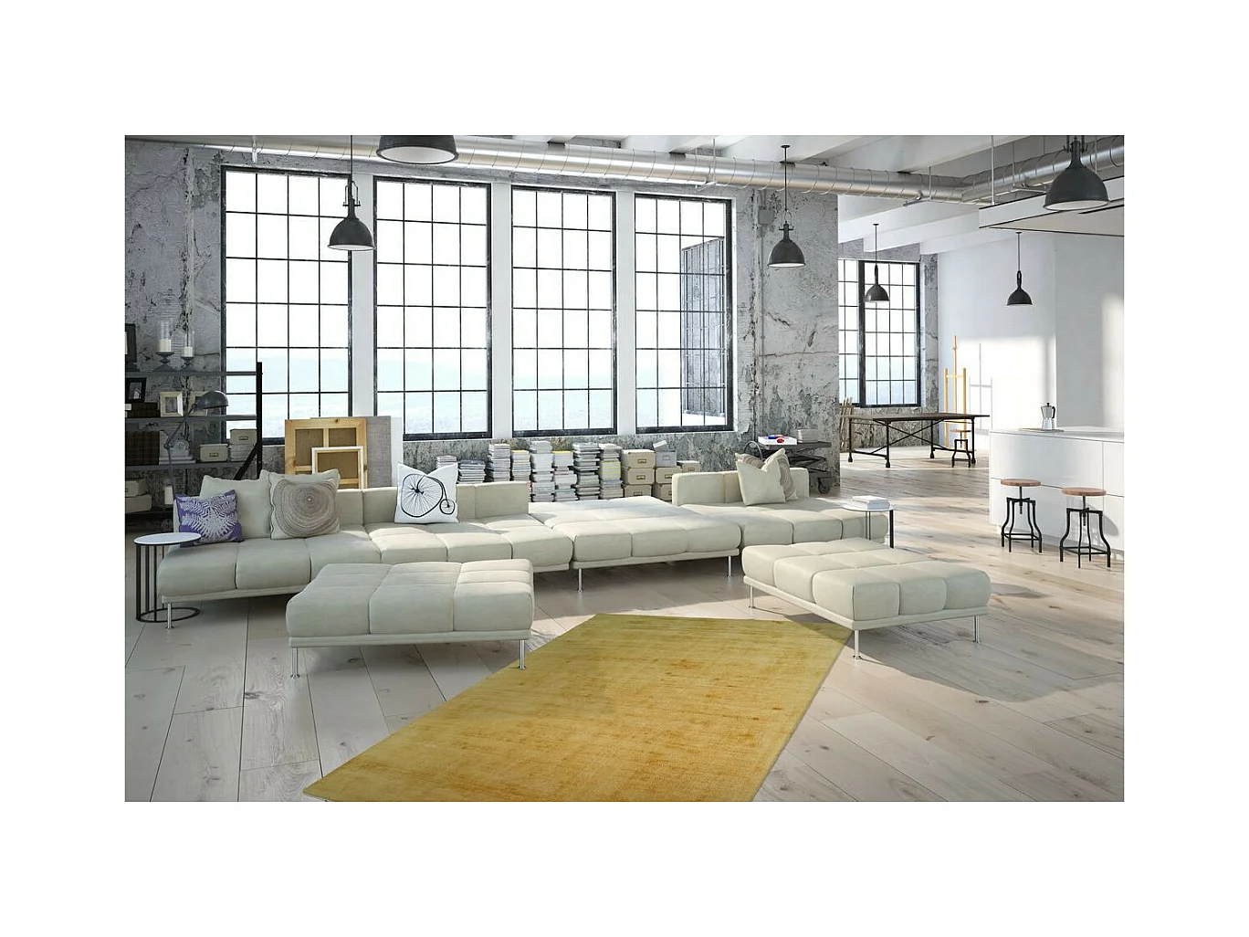 Tapis à Poils Courts Fait Main "Luxury I" Jaune 160 x 230 cm