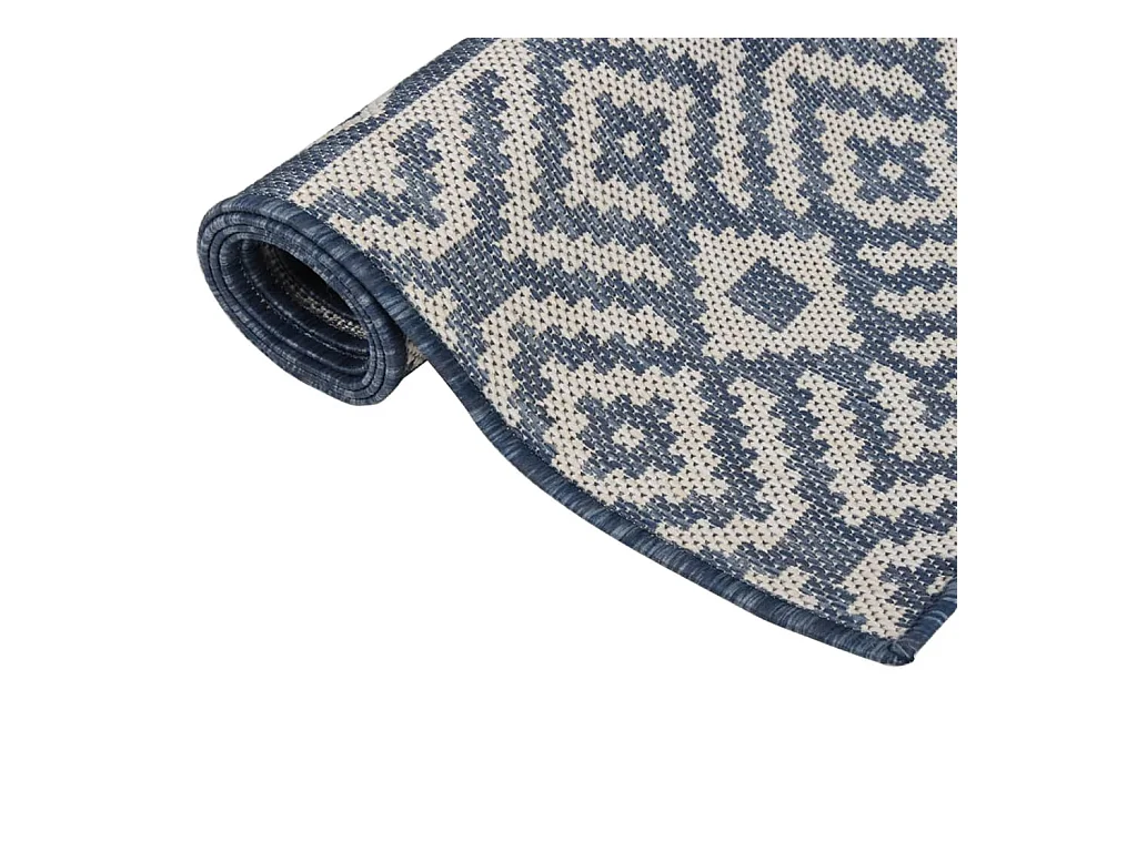 Tapis à tissage plat d'extérieur 100x200 cm motif bleu