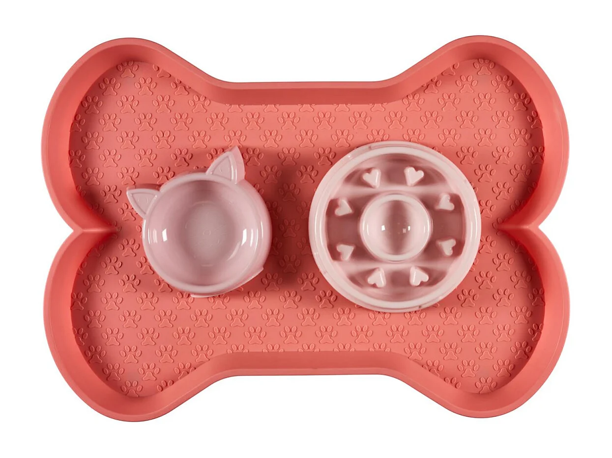 Tapis Antidérapant Gamelle "Os" 58cm Rose