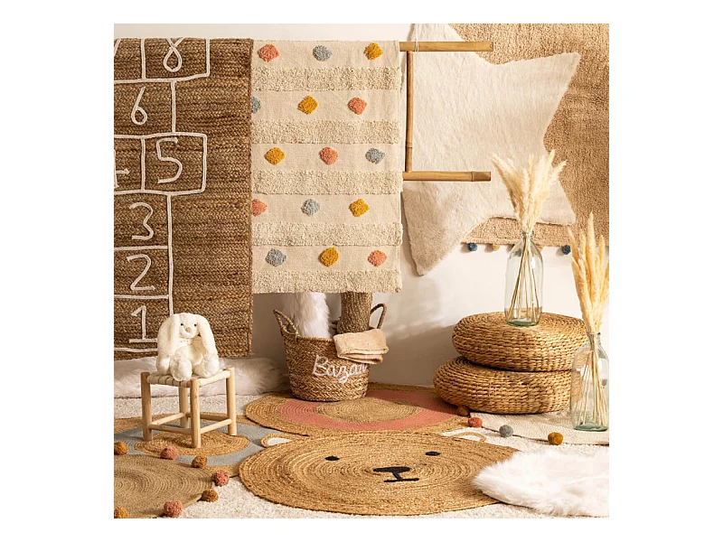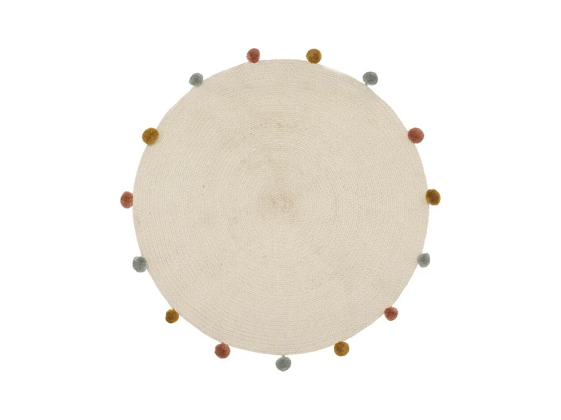 Tapis Enfant Pompons "Arlequin" 90cm Beige