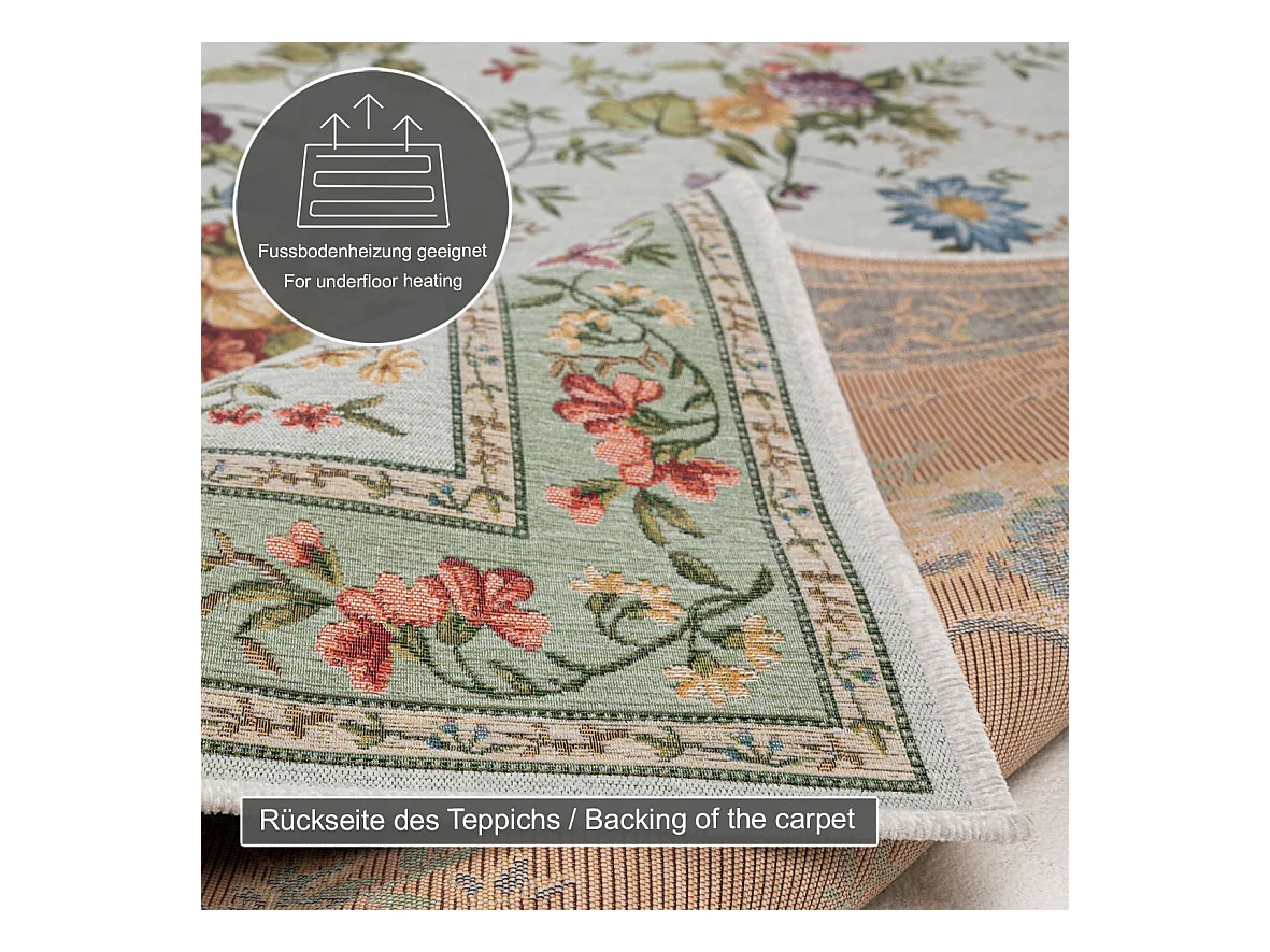 Tapis avec bordure et motif floral 200x290 cm menthe Flomi