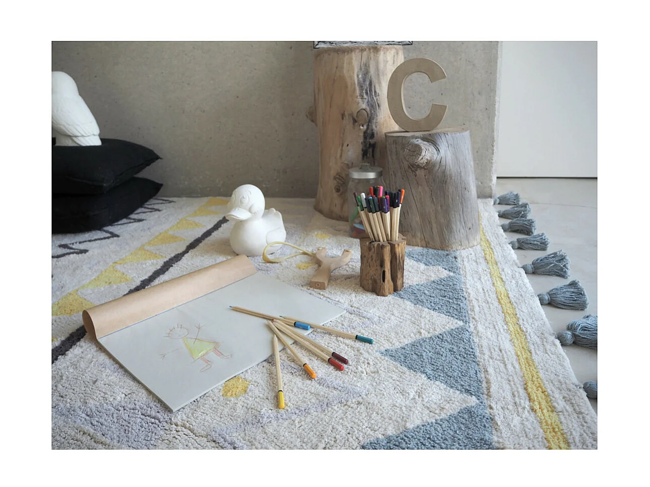 Tapis avec franges lavable en machine Azteca Lorena Canals Rectangulaire Design Fait main