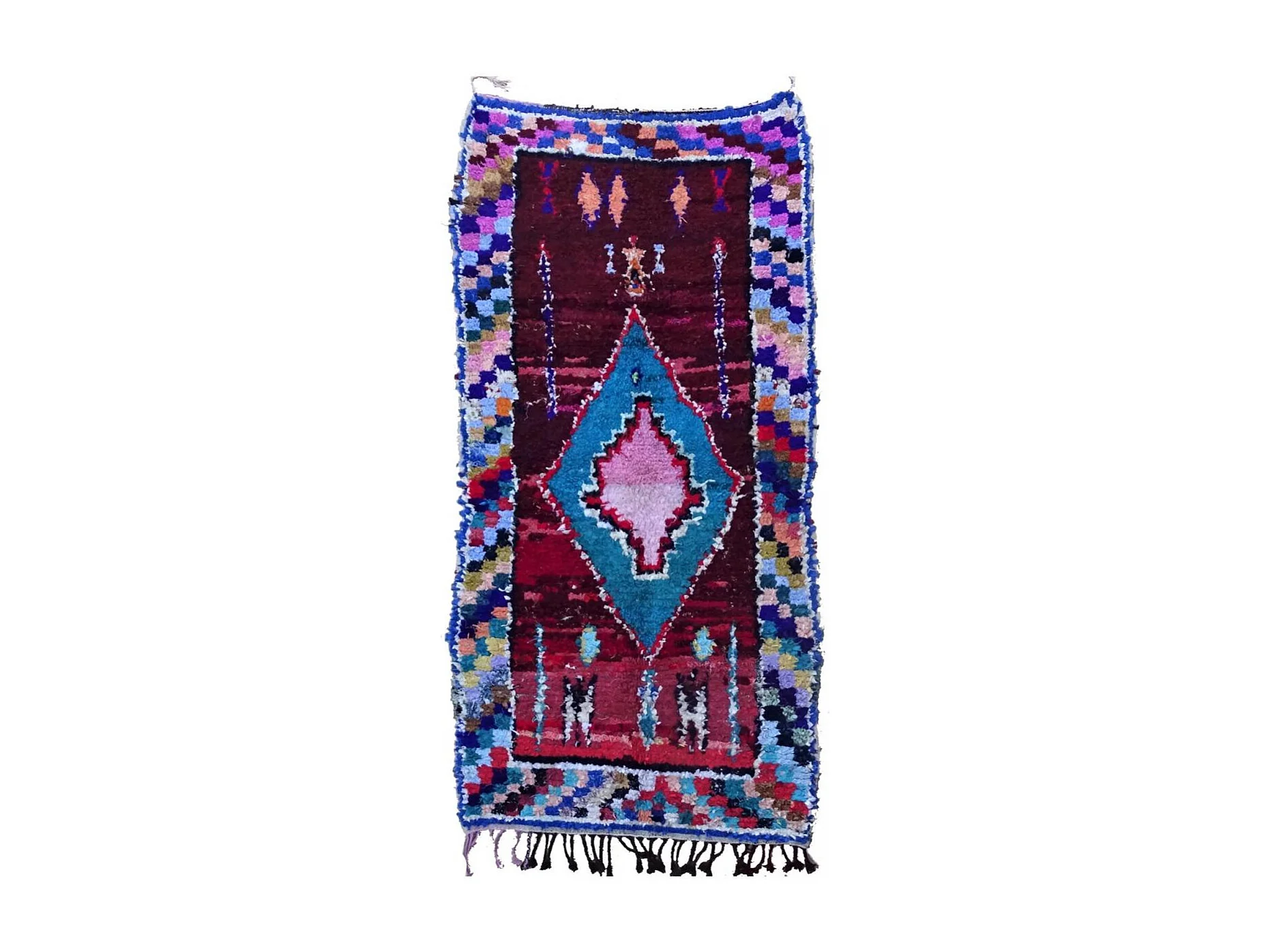 Authentique tapis berbère 120x230 fait main en tissu recyclé bleu et rouge KSABI